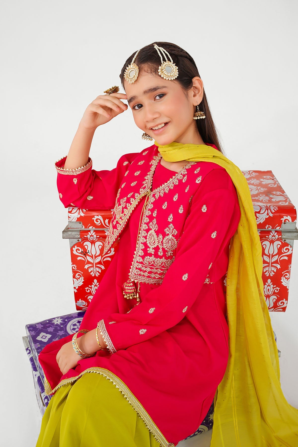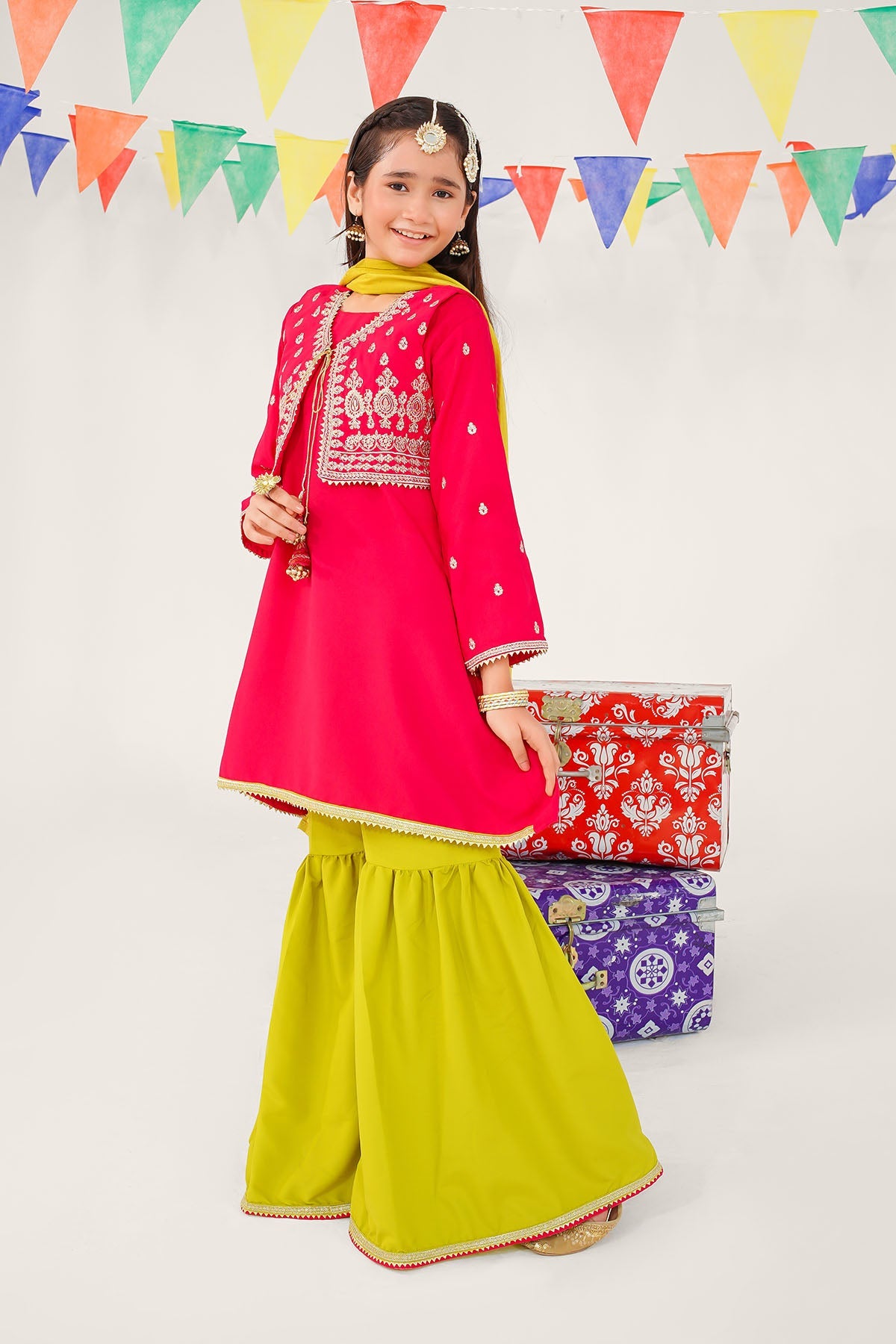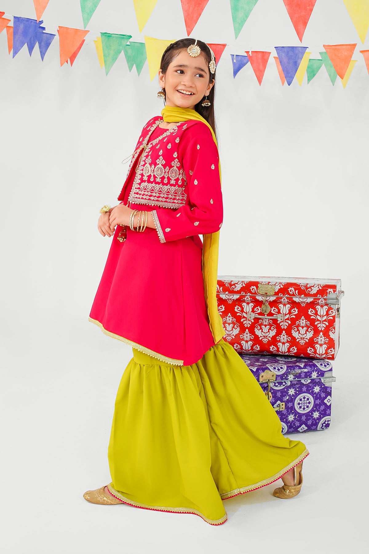 Bottom: Lime Green Raw Silk Gharara With Embroidery