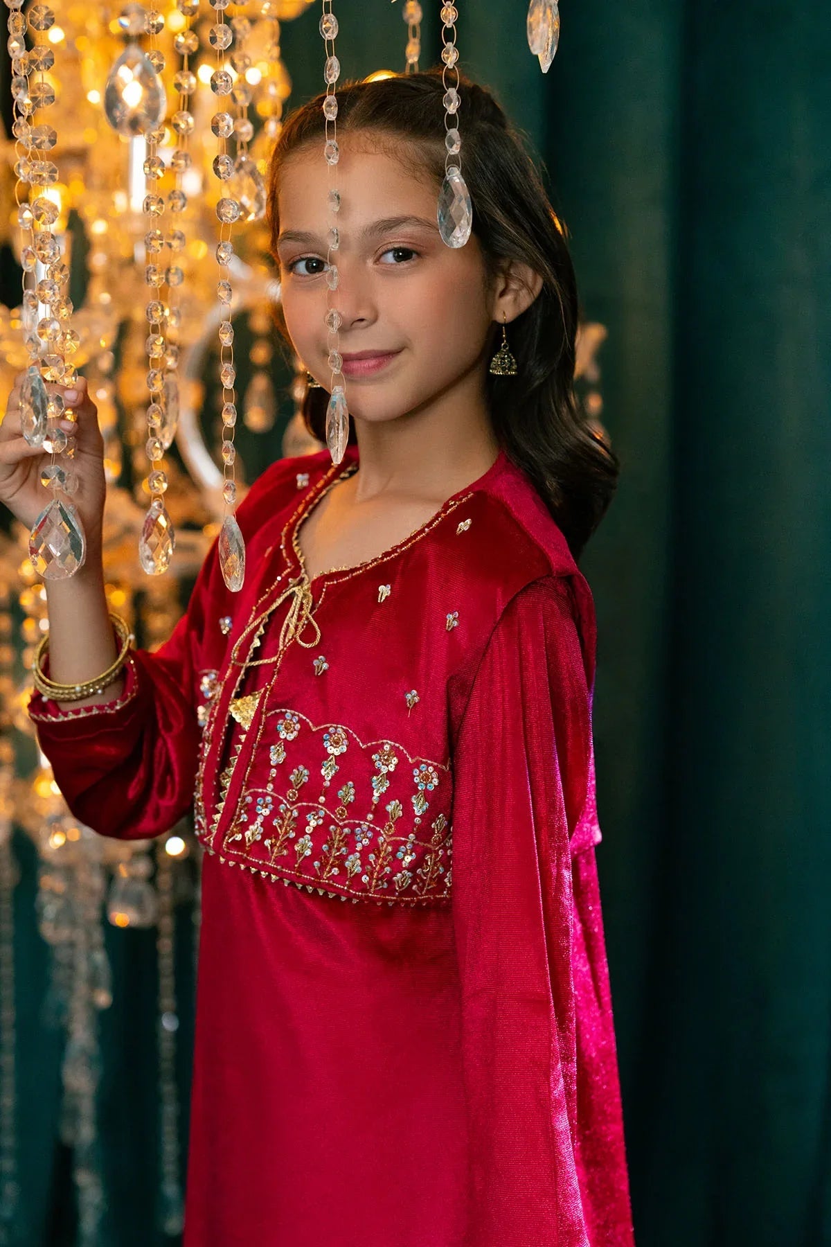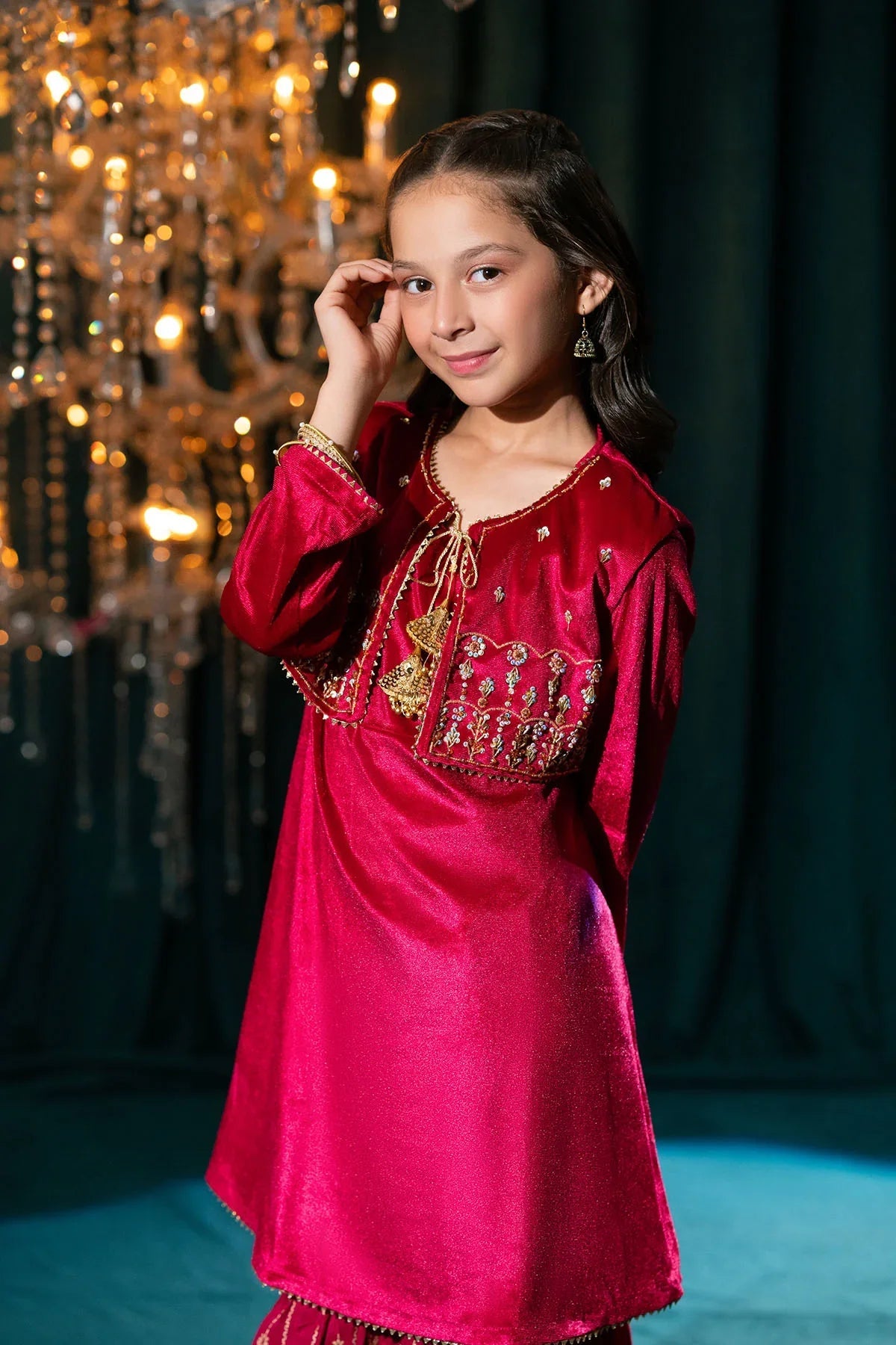 Top: Magenta Pink Velvet Kurta With Hand Adda Work On Koti