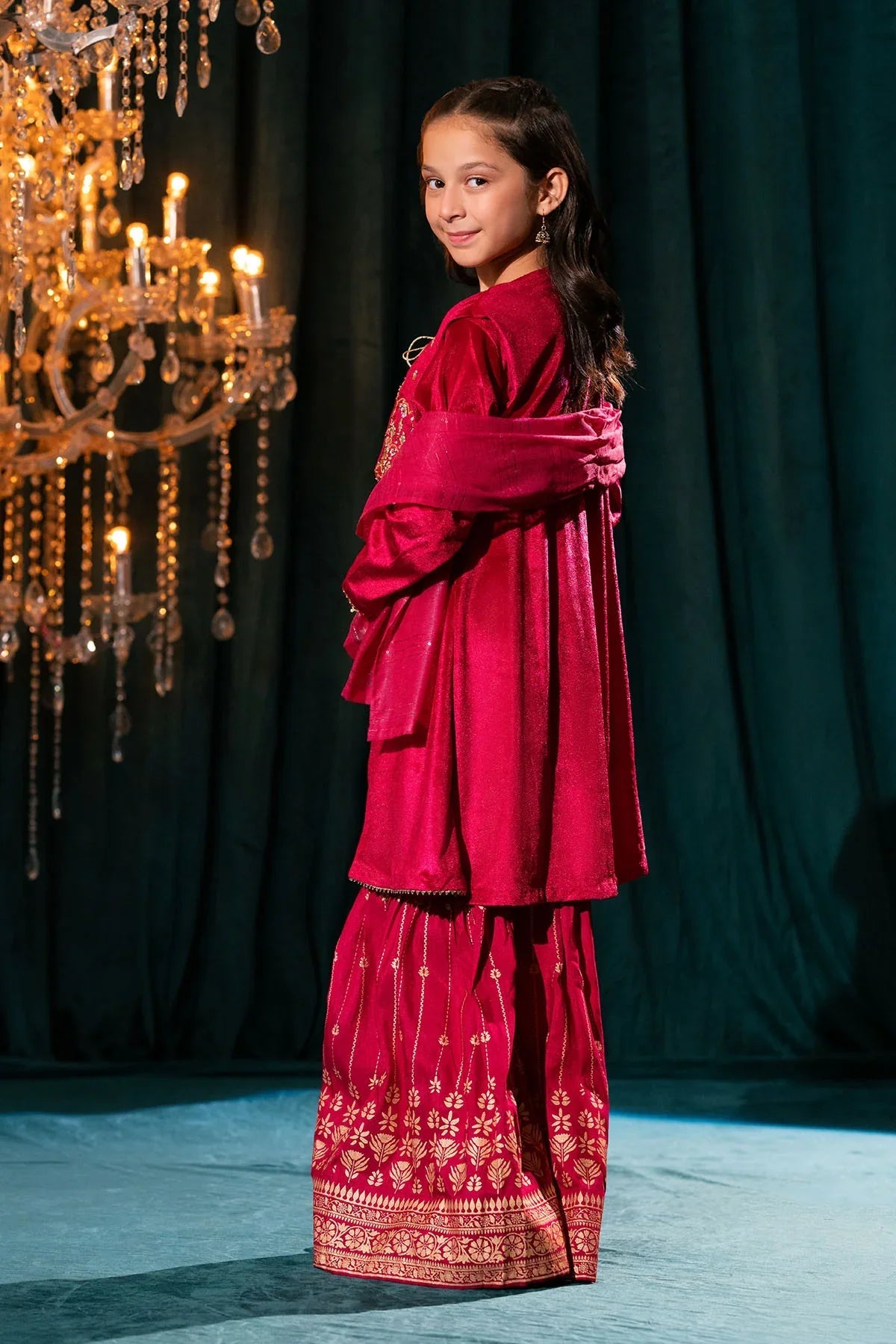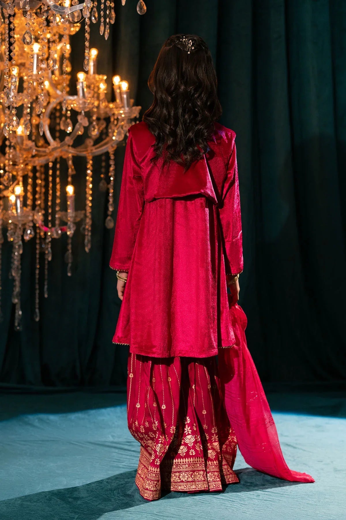 Bottom: Magenta Pink Raw Silk Gharara With Screen Print