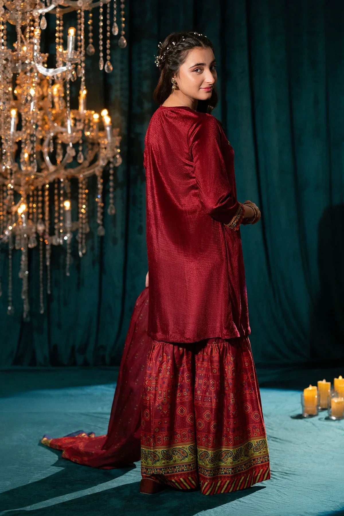 Bottom: Maroon Malai Crepe Digital Printed Gharara