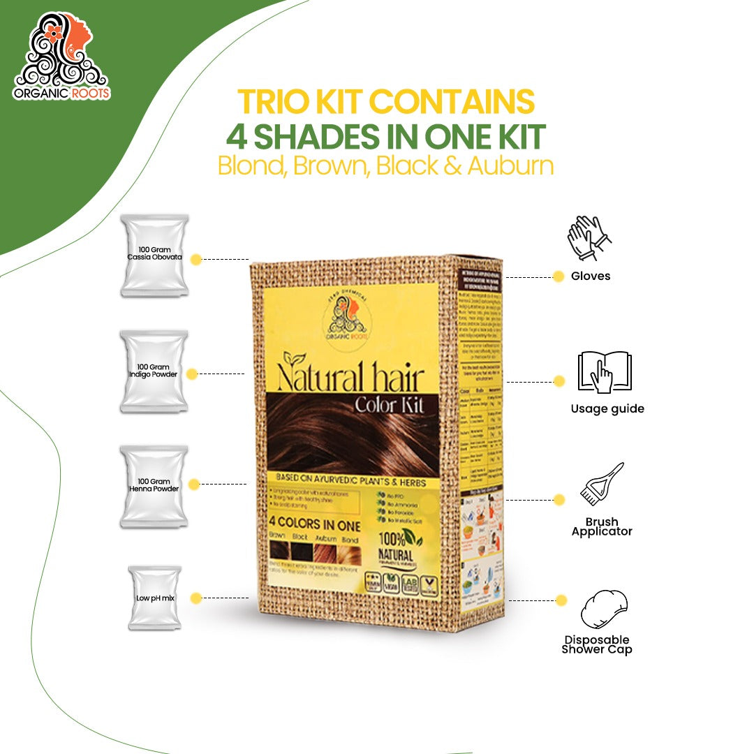 This is a plant-based hair dye method that gives 100% chemical-free white hair coverage into shades of brown to blond or black using Henna, and indigo. These all are plants and all stain hair's outer layer of keratin. This does not affect hair’s natural melanin, so this is a damage-free method and Natural Hair Color
