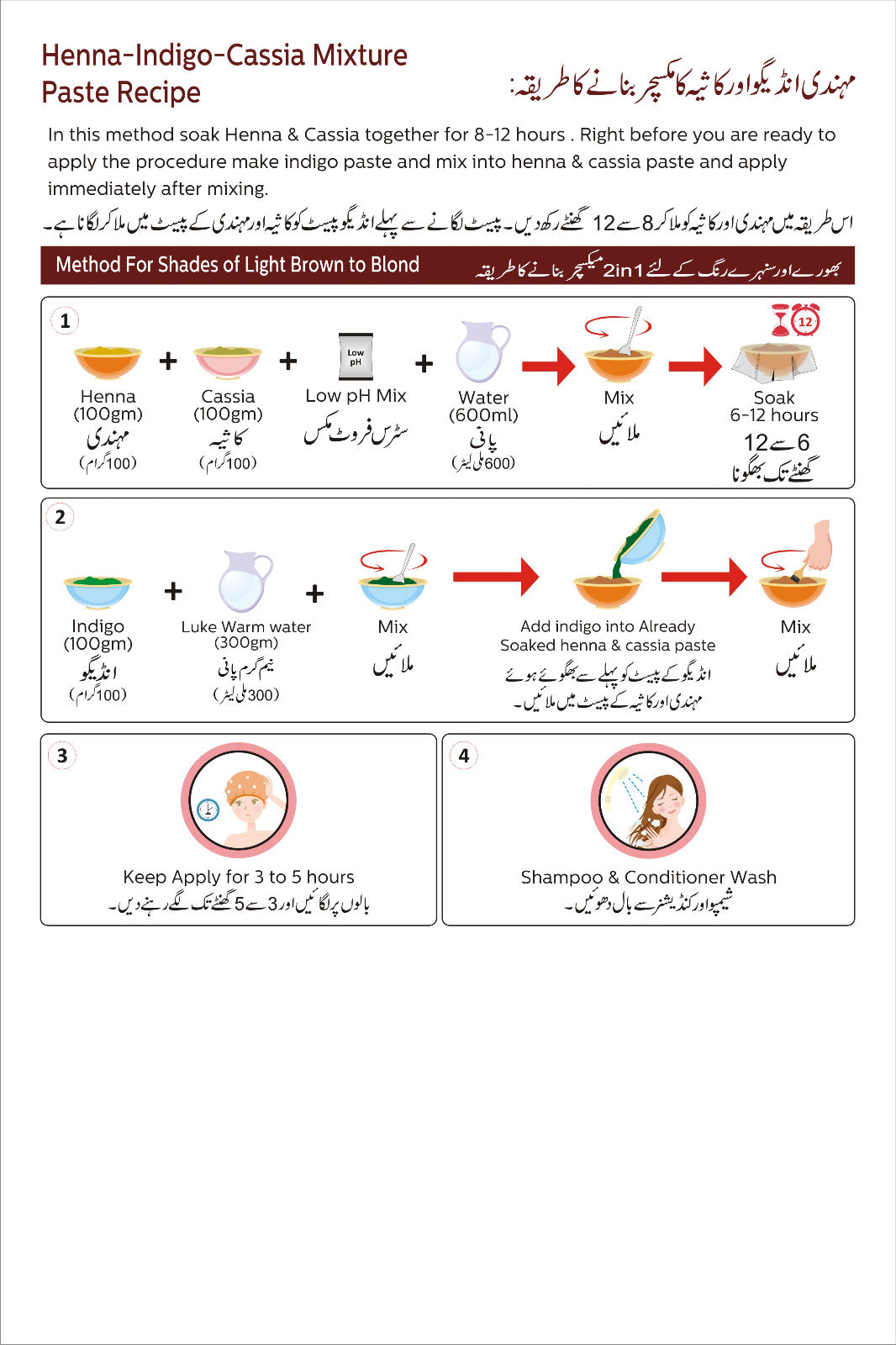 Cassia Can Be used separately as a hair-strengthening pack, in case you just choose henna and indigo for color purposes.
