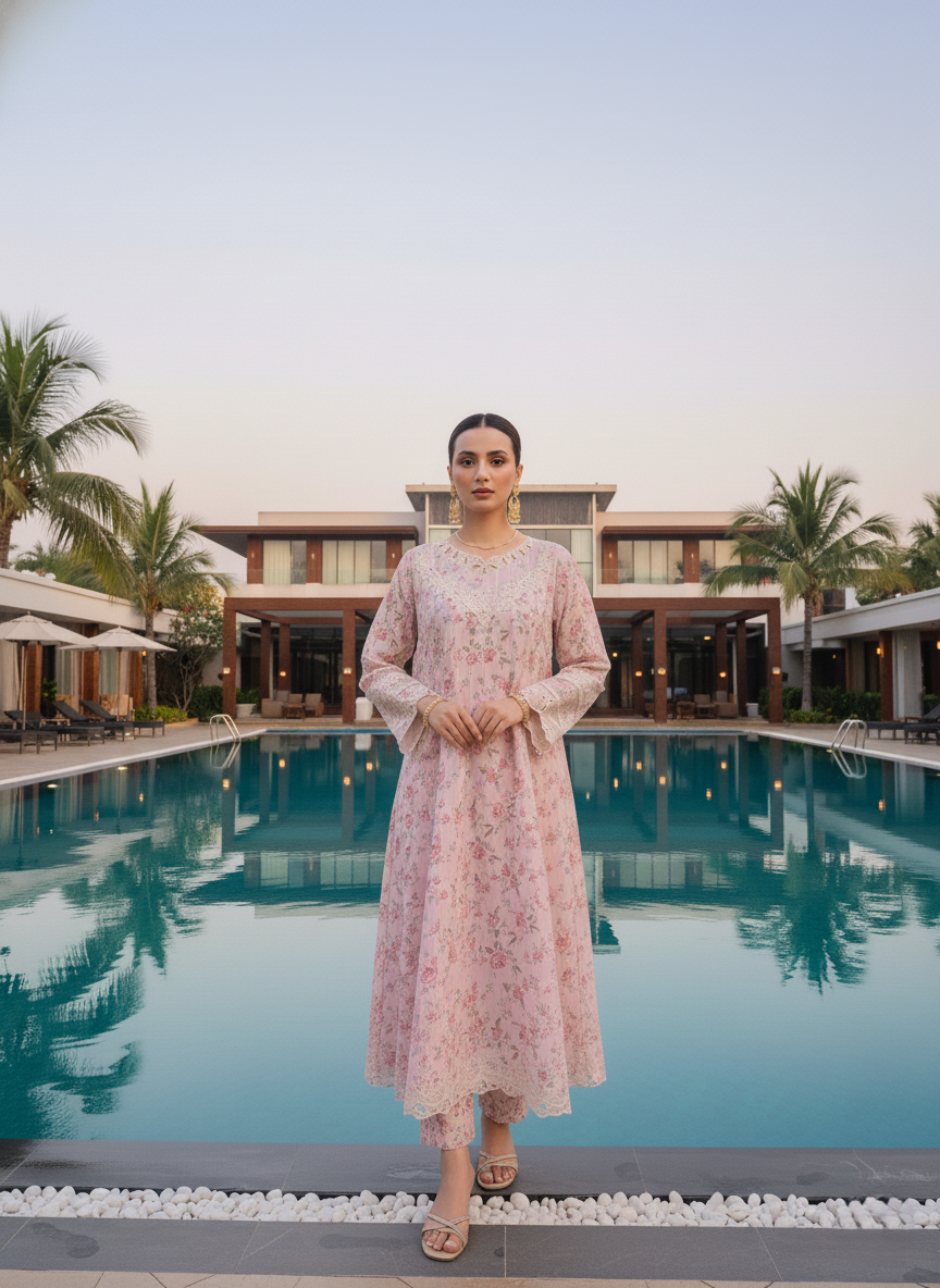 Each frock-style outfit showcases the intricate beauty of embroidery and digital prints — balanced with hand-applied embellishments that elevate the look to pure sophistication. Designed for the modern woman who values detail and poise, ORLINA-1 is perfect for festive occasions, formal gatherings, or elegant daytime wear.