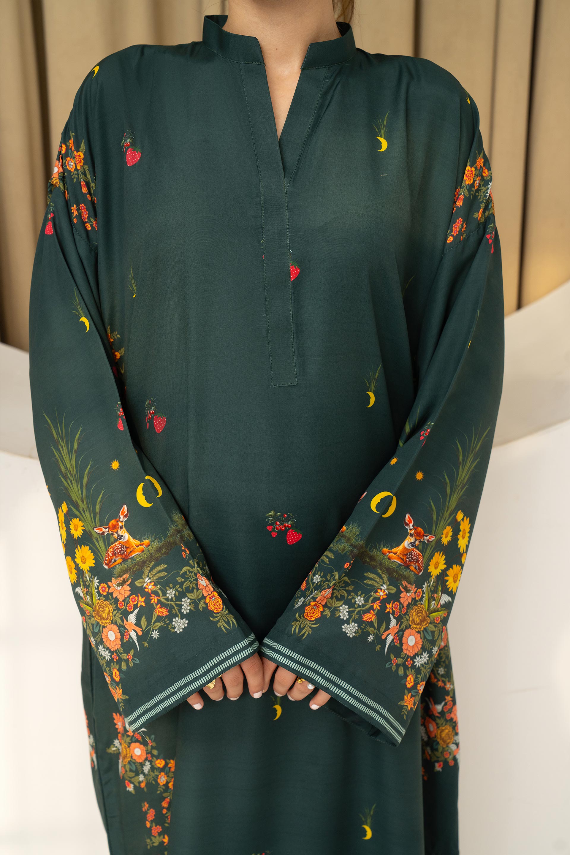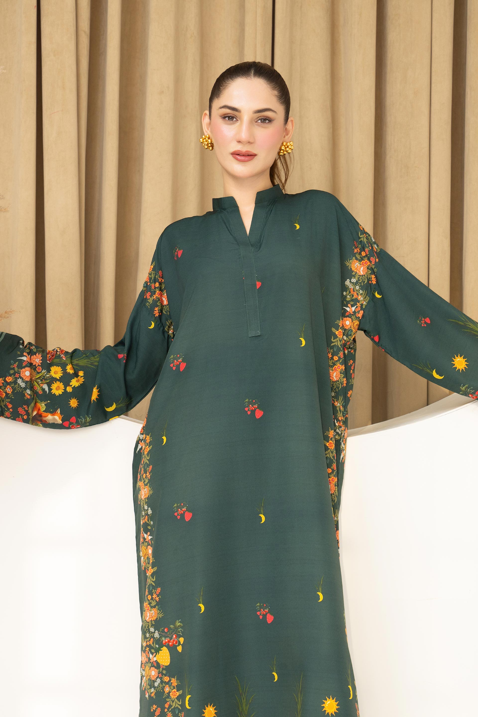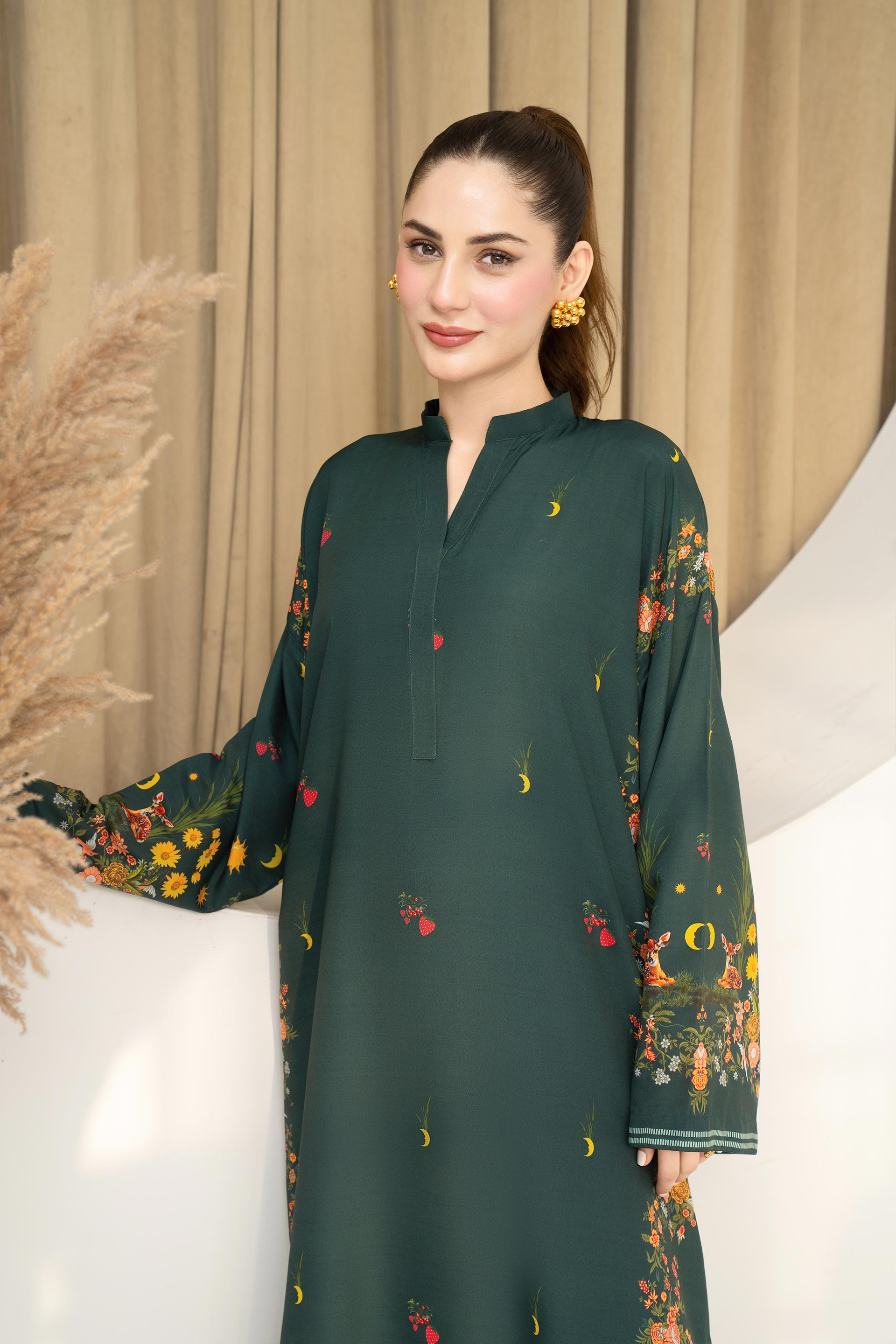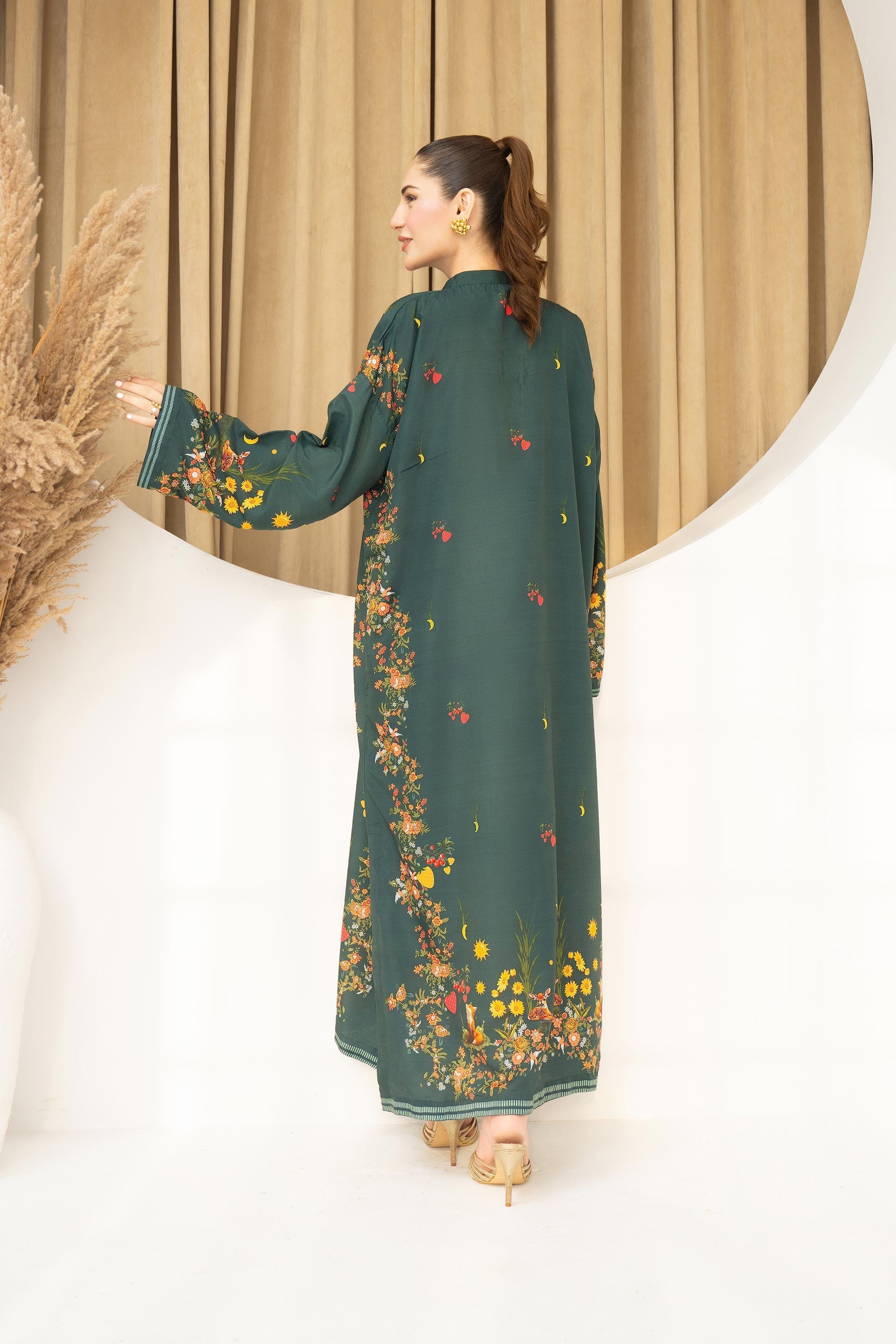Bring a vibrant touch to your wardrobe with the Fiorra. Crafted from soft lawn fabric, this ready-to-wear outfit comes in a bold Bottle green shade with stylish digital prints. Light, comfortable, and chic—perfect for casual gatherings, summer outings, or daily wear.