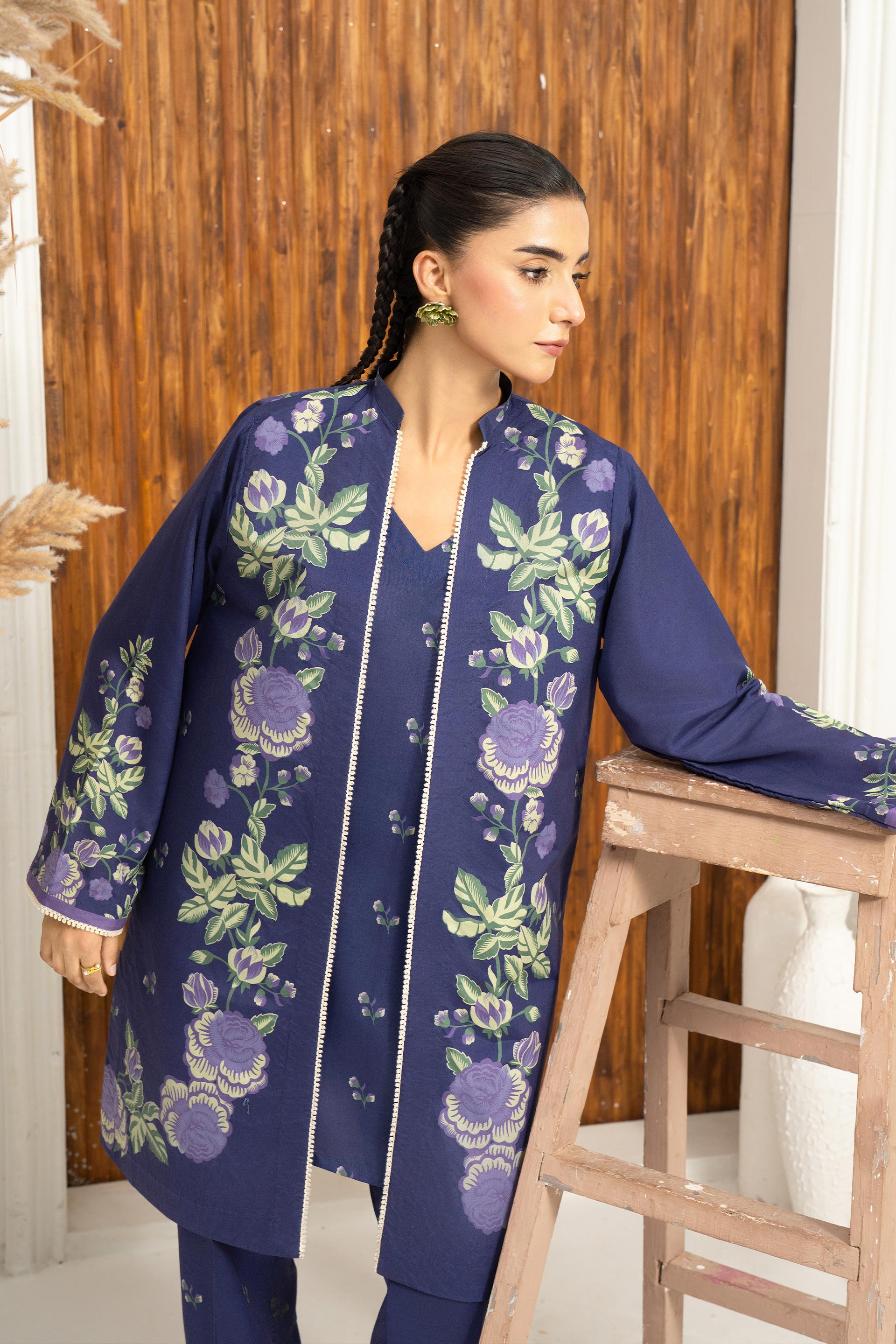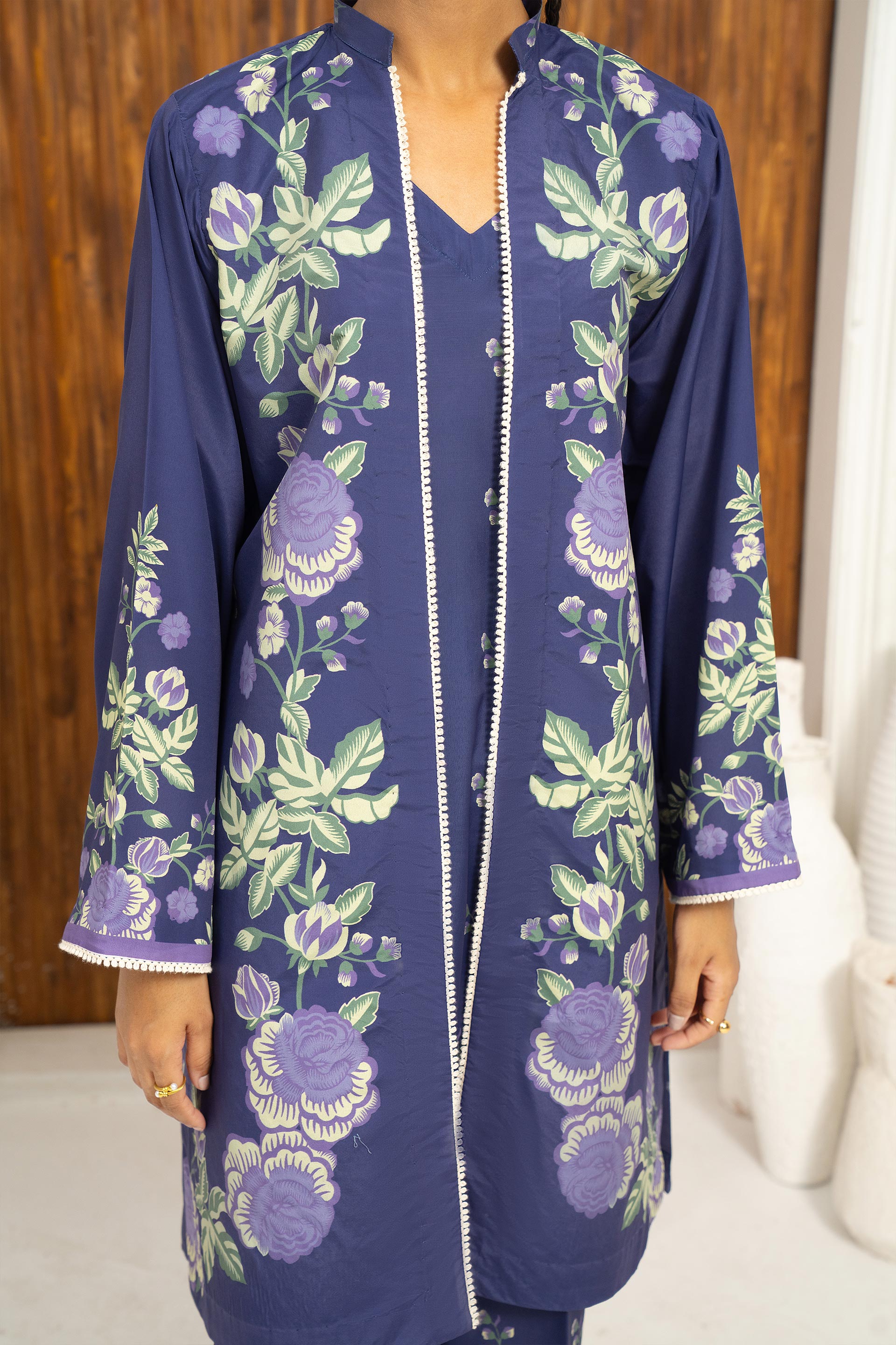 This stunning 3-piece cord set, named Rosivra, is designed for the fashion-forward woman who loves a touch of vibrant elegance. It features a printed shrug, printed shirt, and matching printed trousers, all adorned with intricate floral patterns. The combination of bold prints creates a visually striking look, while the lightweight fabric ensures comfort throughout the day. Whether for a casual outing or a more festive occasion, this set offers a harmonious balance of style and sophistication, making it a perfect addition to your wardrobe.