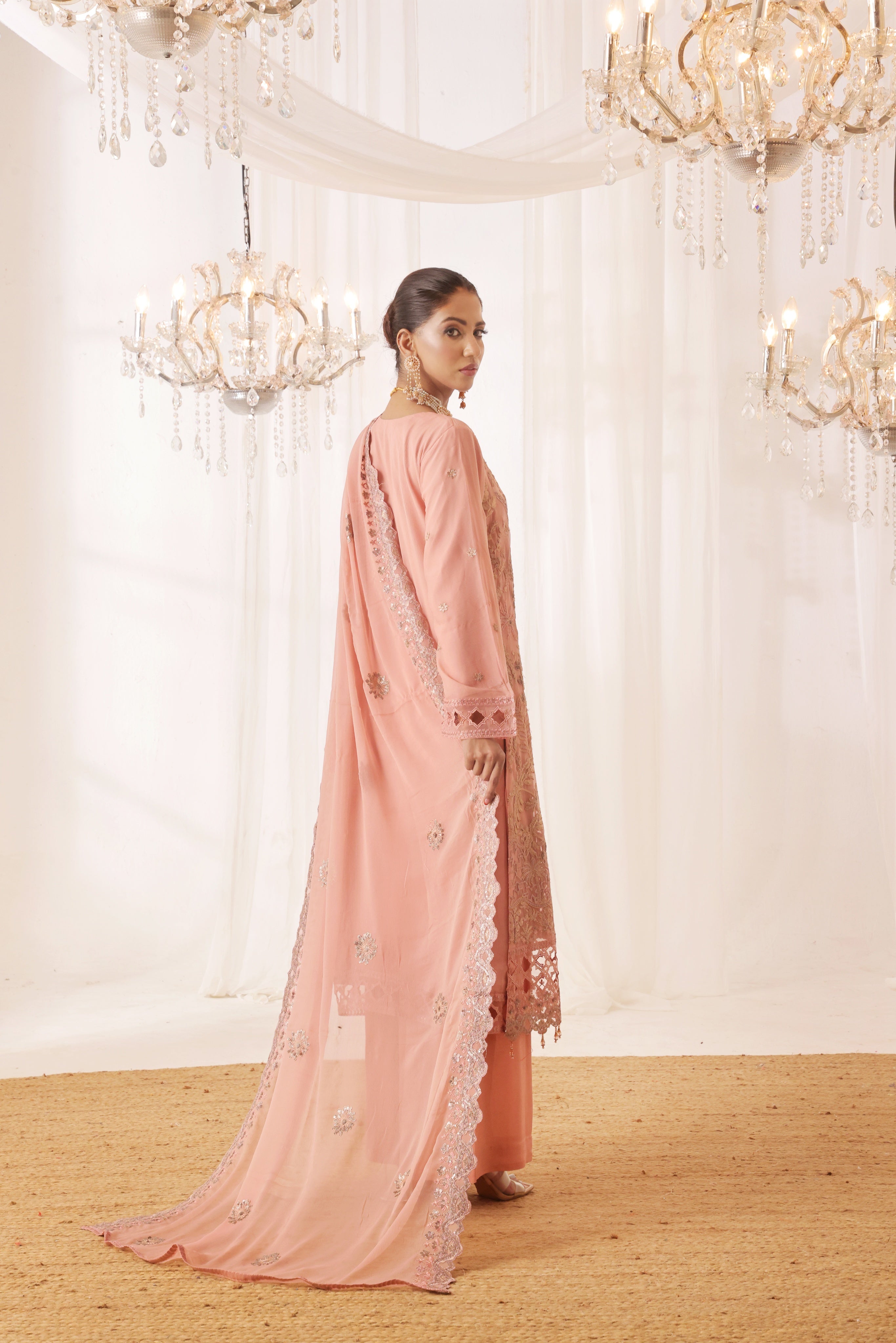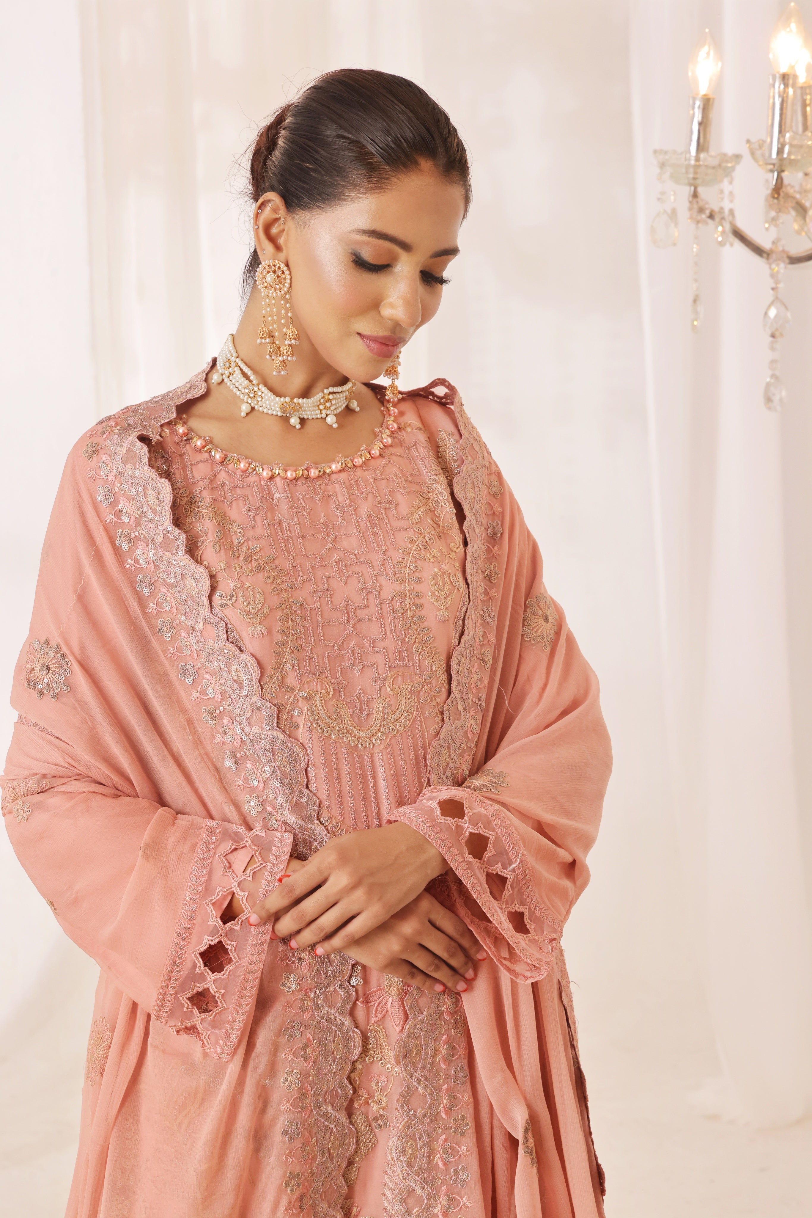 • Dupatta: An exquisitely embroidered chiffon dupatta, light yet regal, completing the ensemble with sheer sophistication.