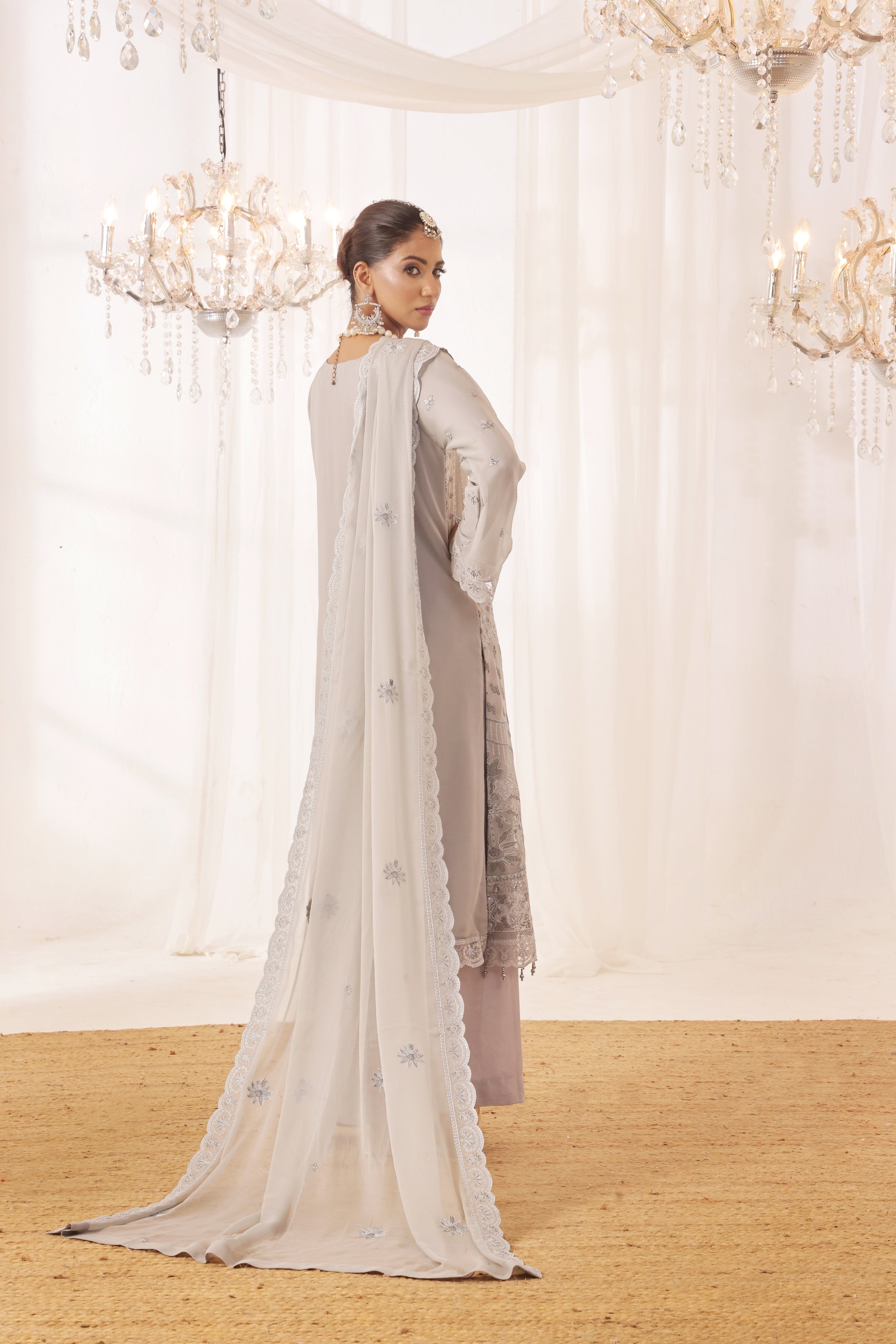Dupatta: An exquisitely embroidered chiffon dupatta, light yet regal, completing the ensemble with sheer sophistication.