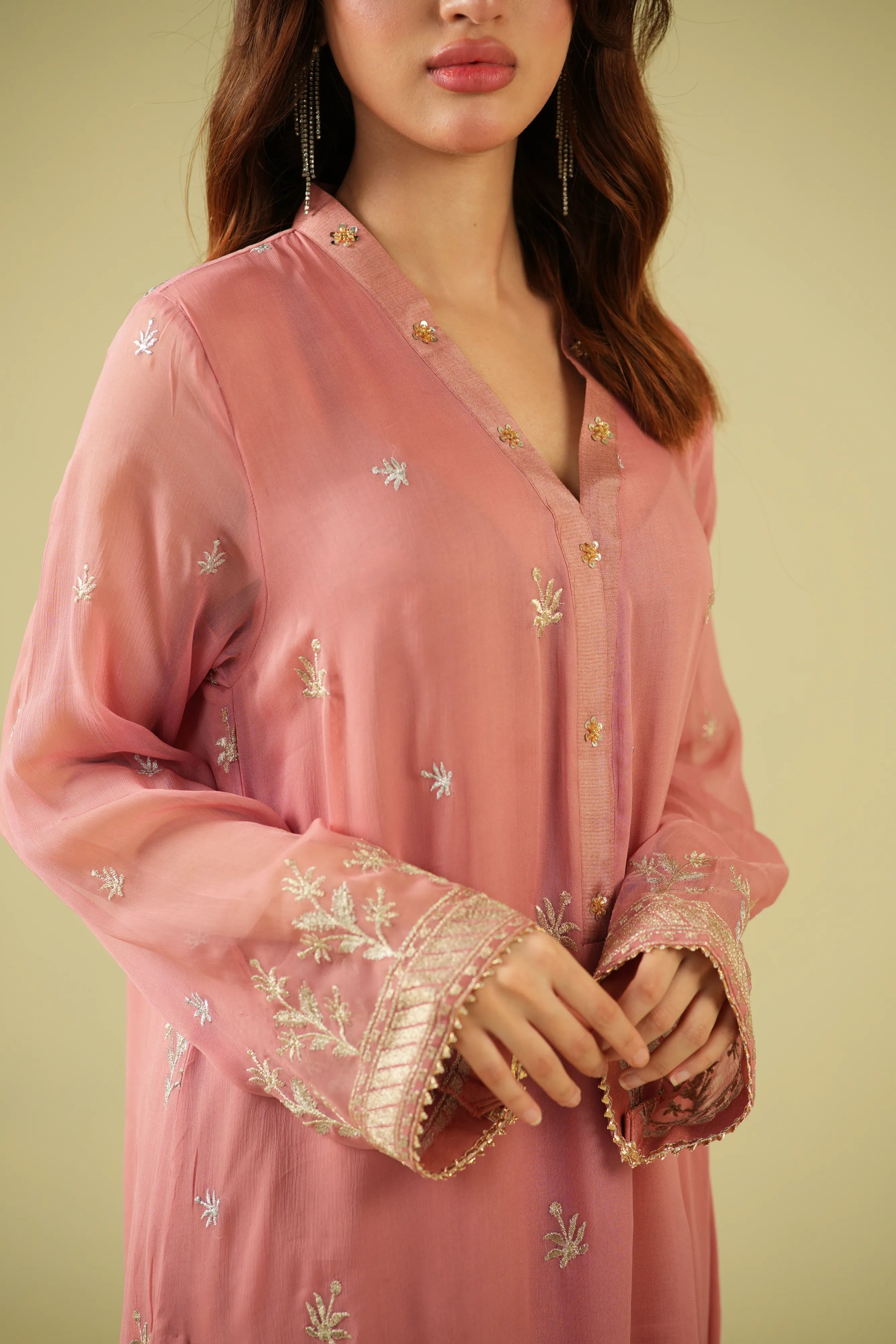 Elegant embroidered chiffon shirt (front, back & sleeves)