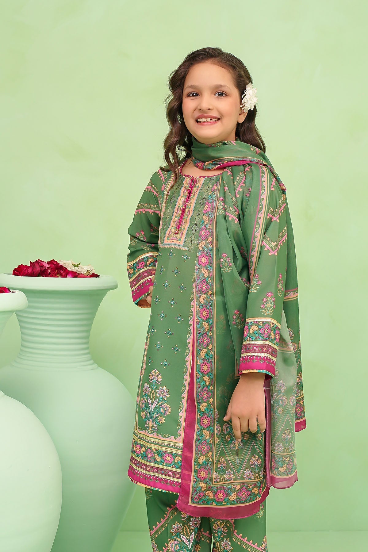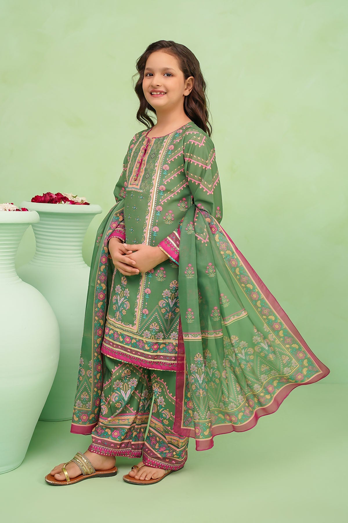 Top: Olive Green Poly Lawn Digital Printed Kurta with Gota Laces