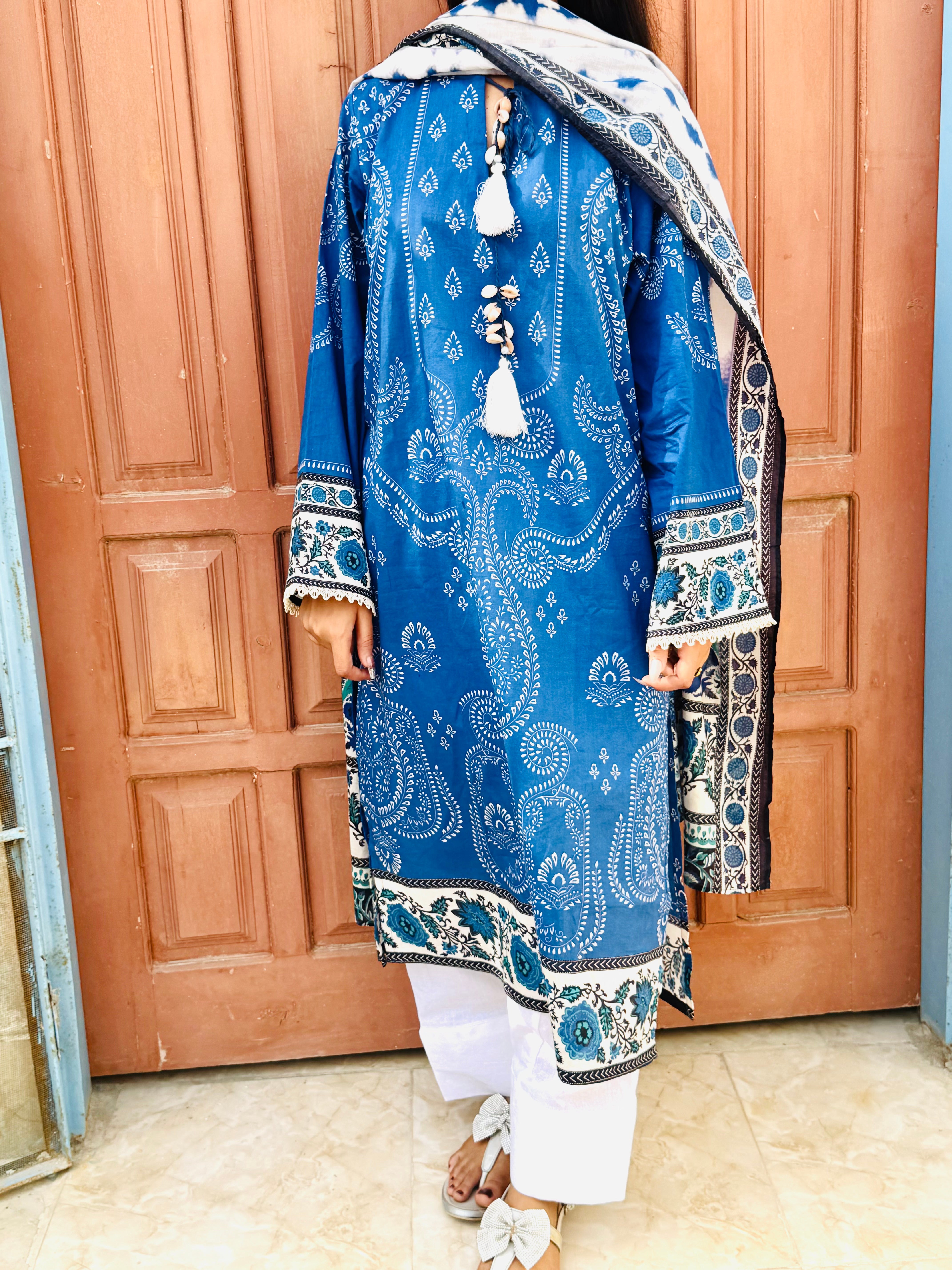 Upgrade your summer fashion with this trendy 3 piece printed lawn dress – a must-have addition to your collection!