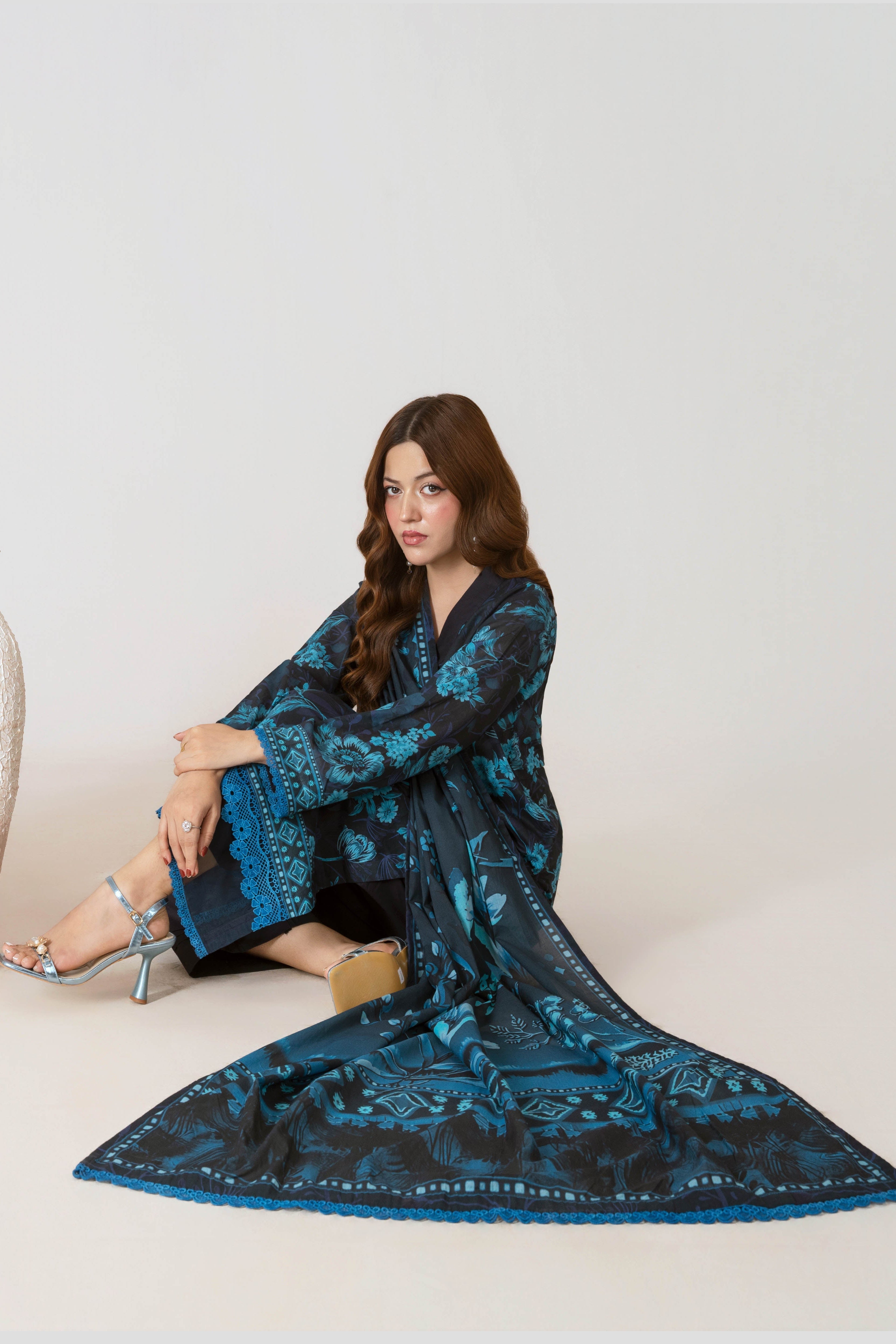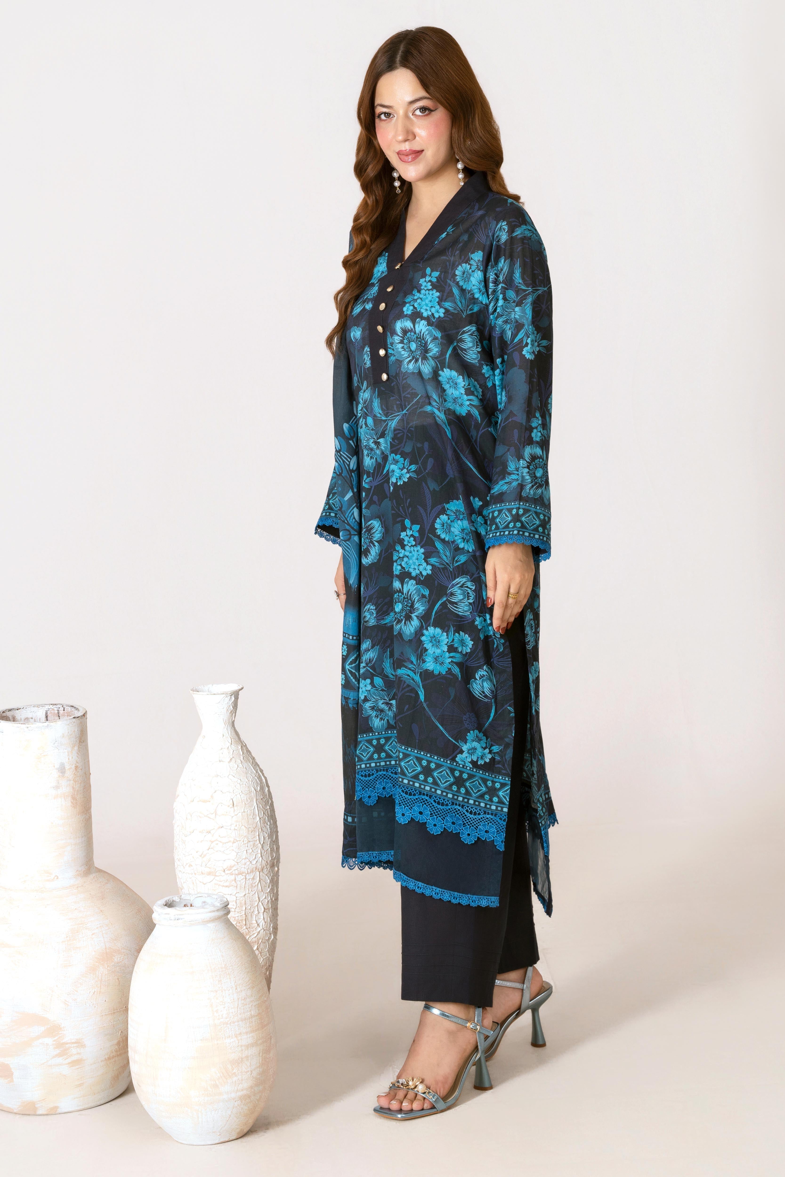 Sada Bahar Stitched 3 Piece Printed Shimmered Cambric Collection'2025-SC-303-BLUE