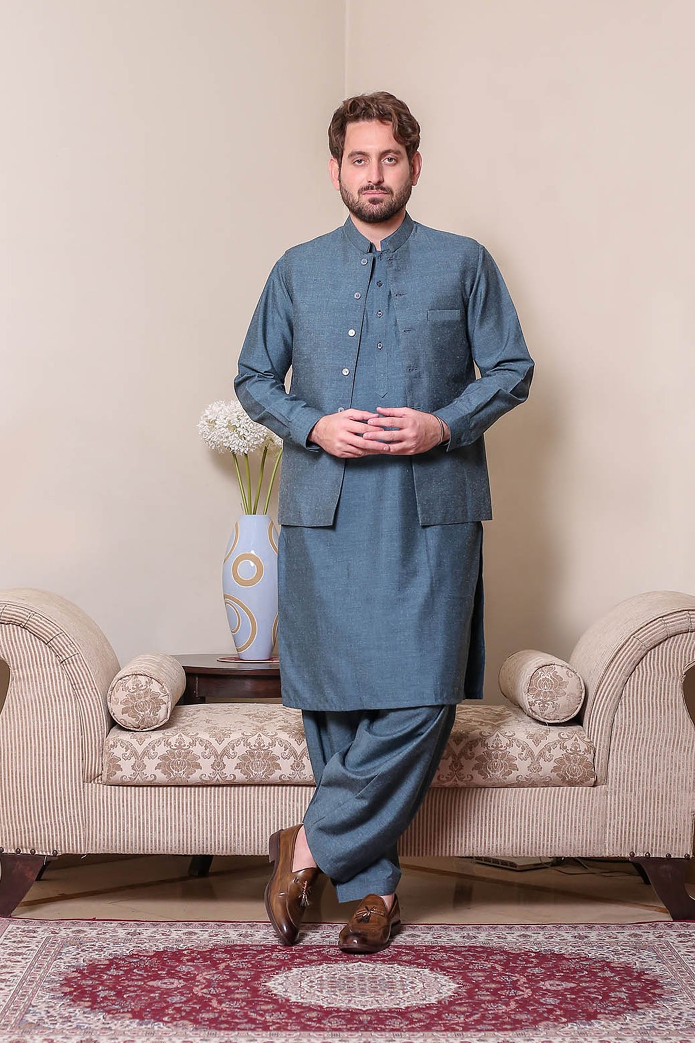Formal Style Kameez Shalwar with Waist Coat Suit for Men , Easy Iron , Formal Wool Fabric , Special For Winter and Festive Use