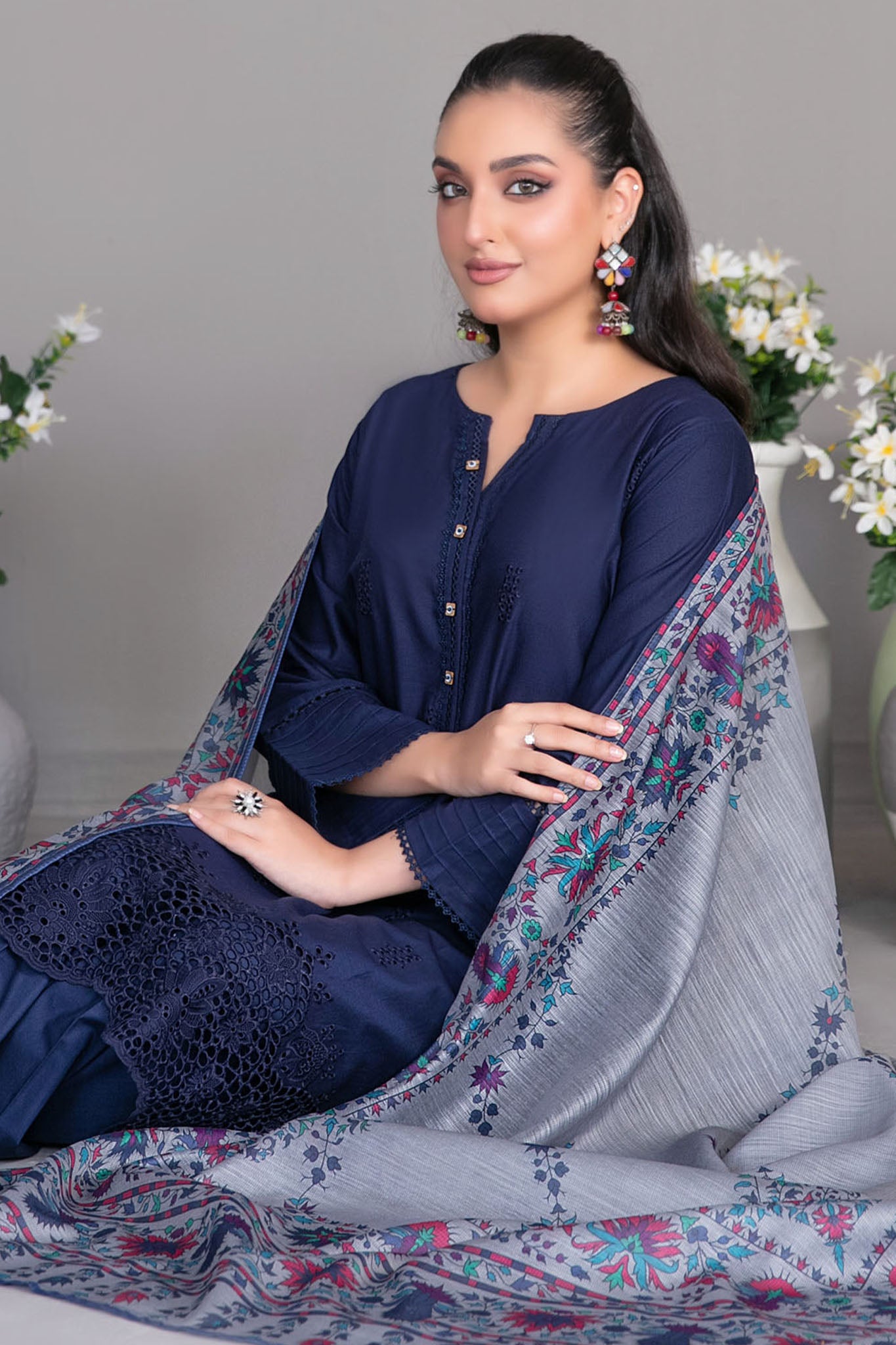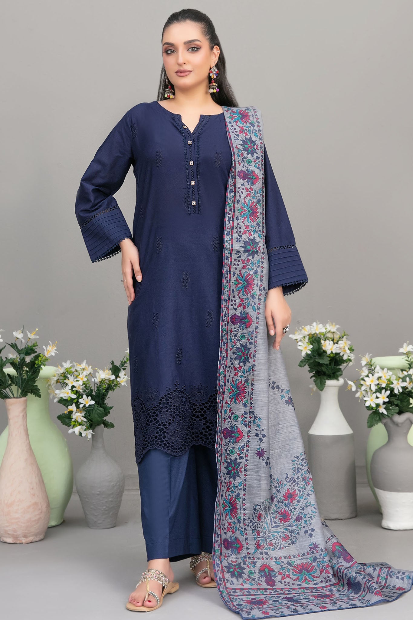 Rinesa By Tawakkal Stitched 3 Piece Emb Schiffli Lawn Suit-D-1905-Navy Blue