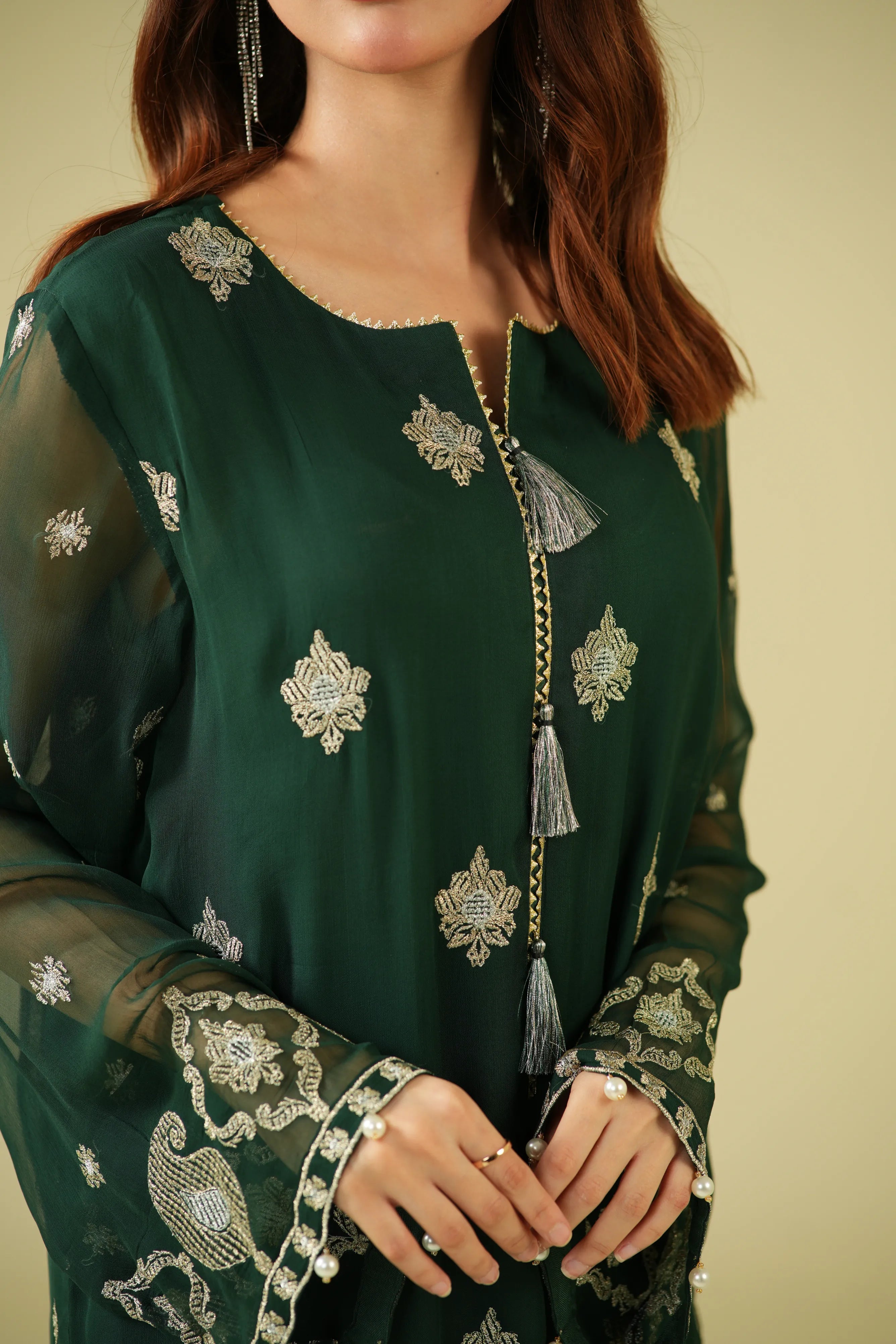 Elegant embroidered chiffon shirt (front, back & sleeves)