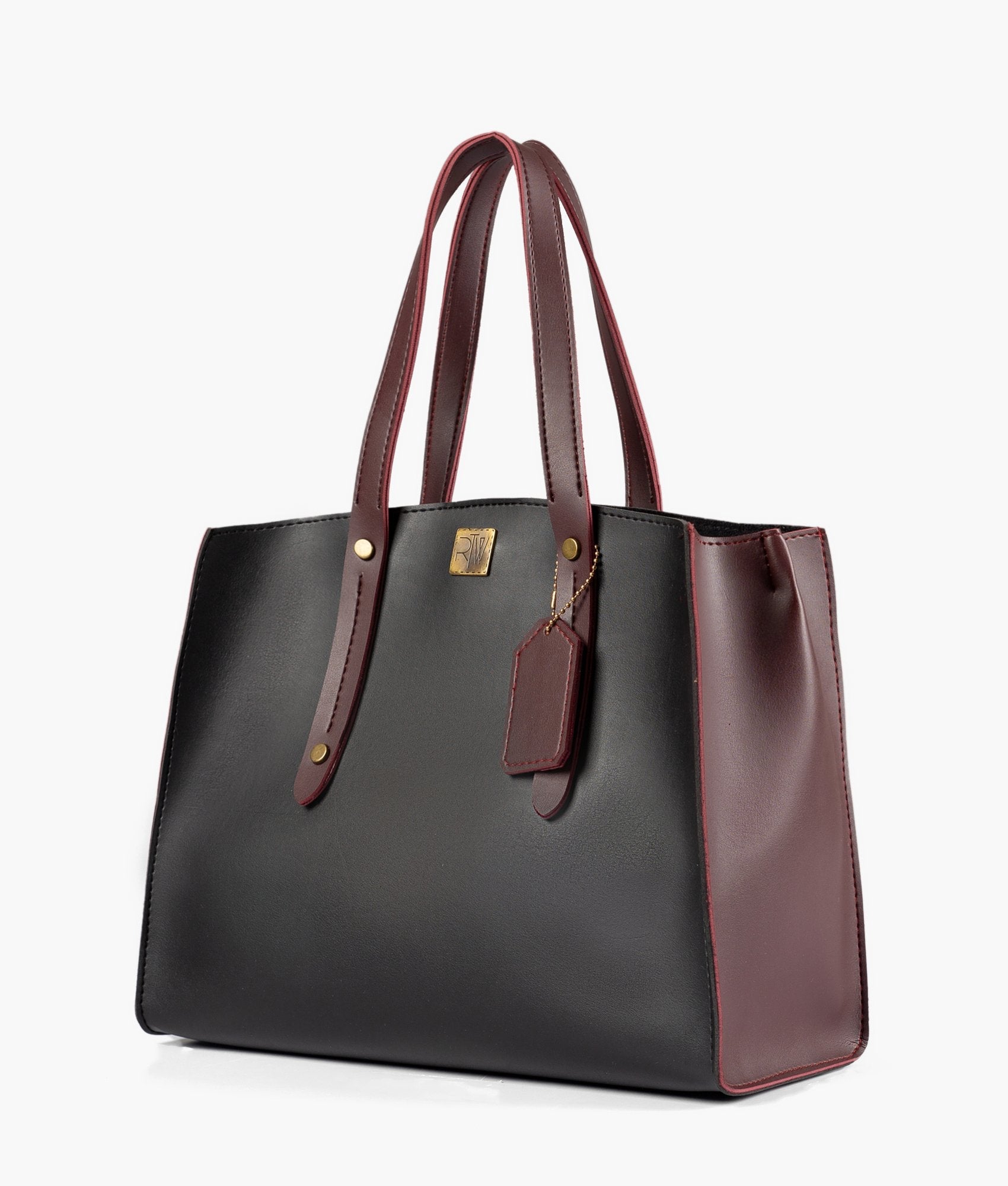 RTW Creation - Black with burgundy multi compartment satchel bag