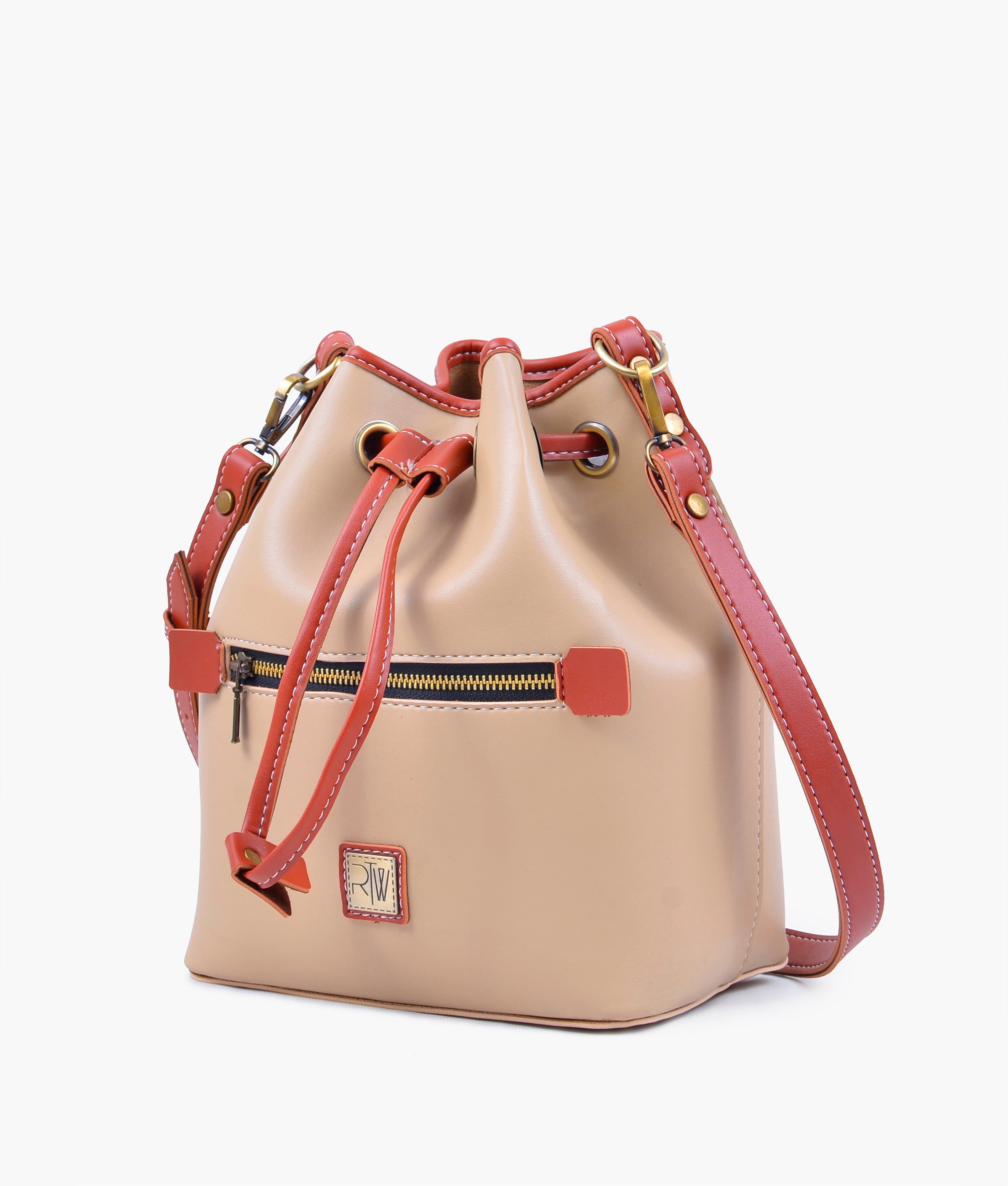 Width: 9 inches Height:?4 inches Depth: 7.5 inches One main draw-string compartment. One front zipper pocket. Strong base with metal...