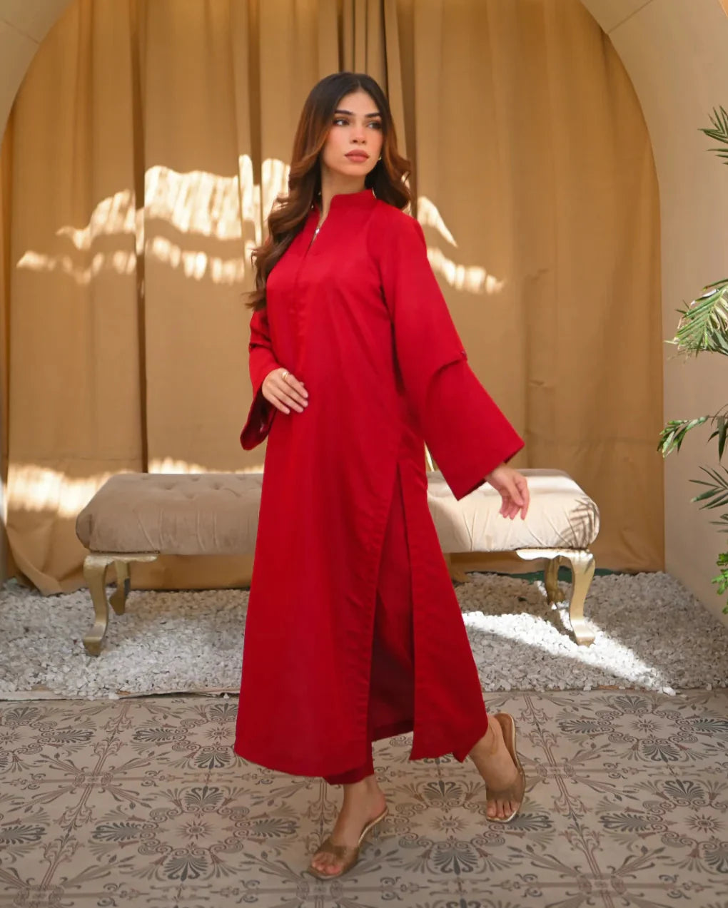 It's a two piece matching set includes a long shirt along with straight trouser.