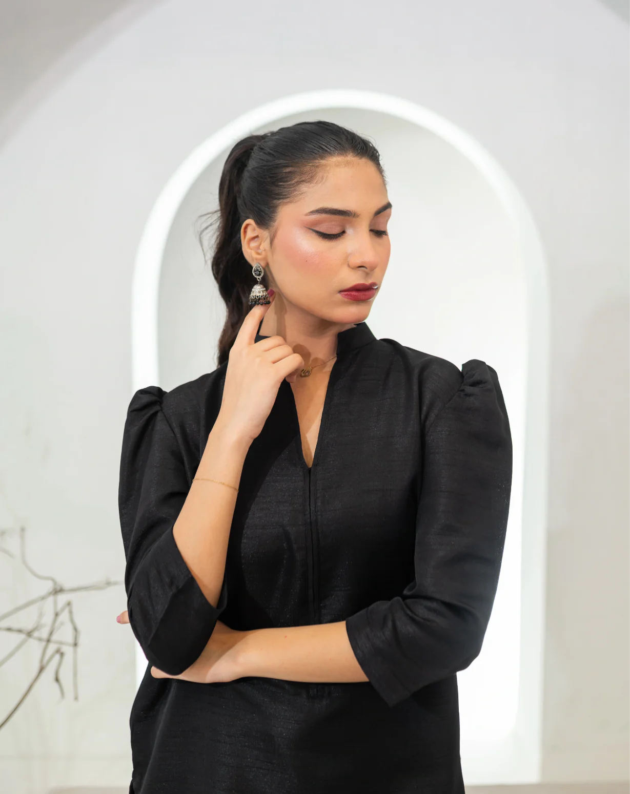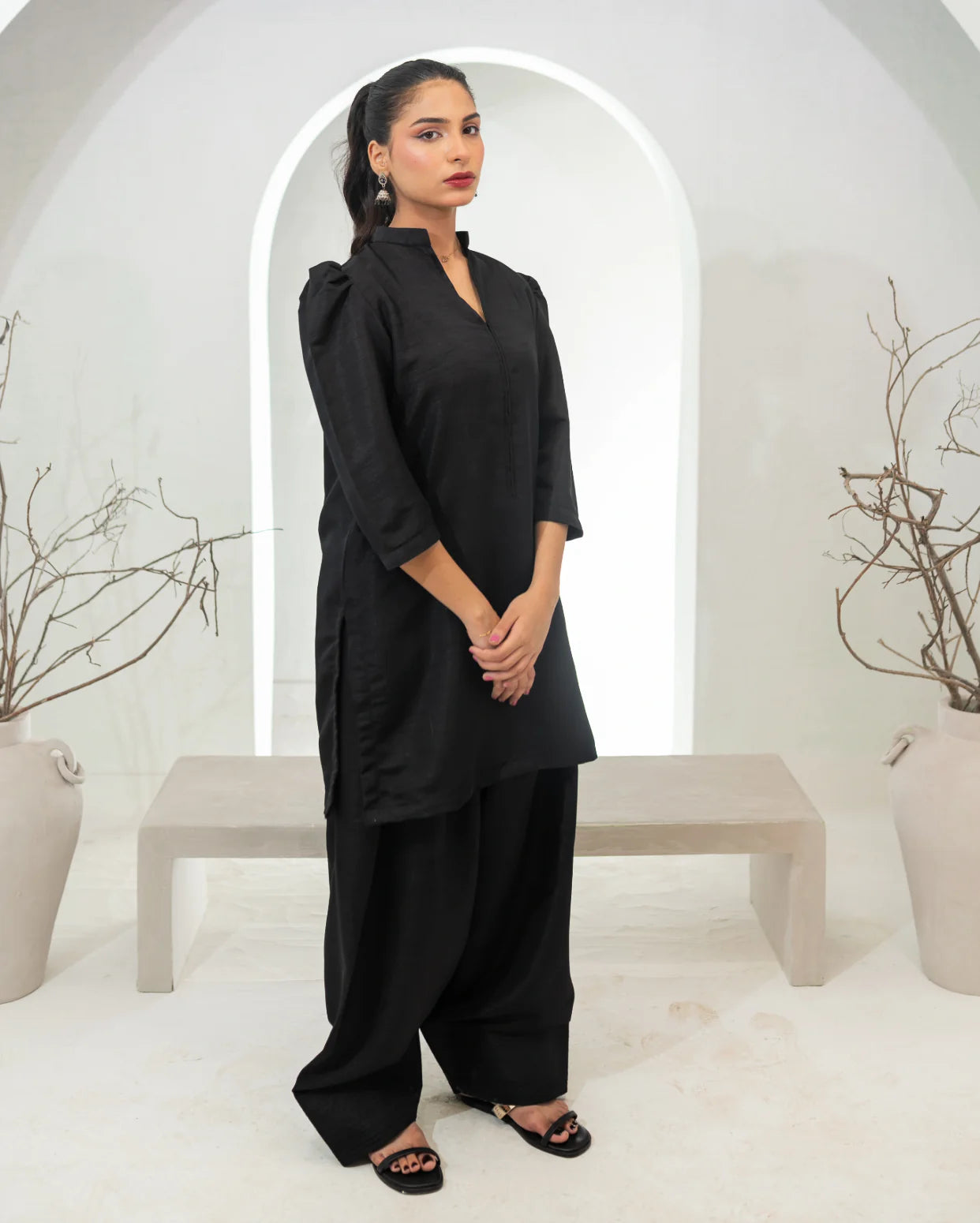 Step into timeless elegance with our Farshi Shalwar set, meticulously crafted from luxurious Indian Raw Silk. This ensemble features a beautifully designed Farshi Shalwar, known for its flowing, wide-legged silhouette, paired with a matching top.