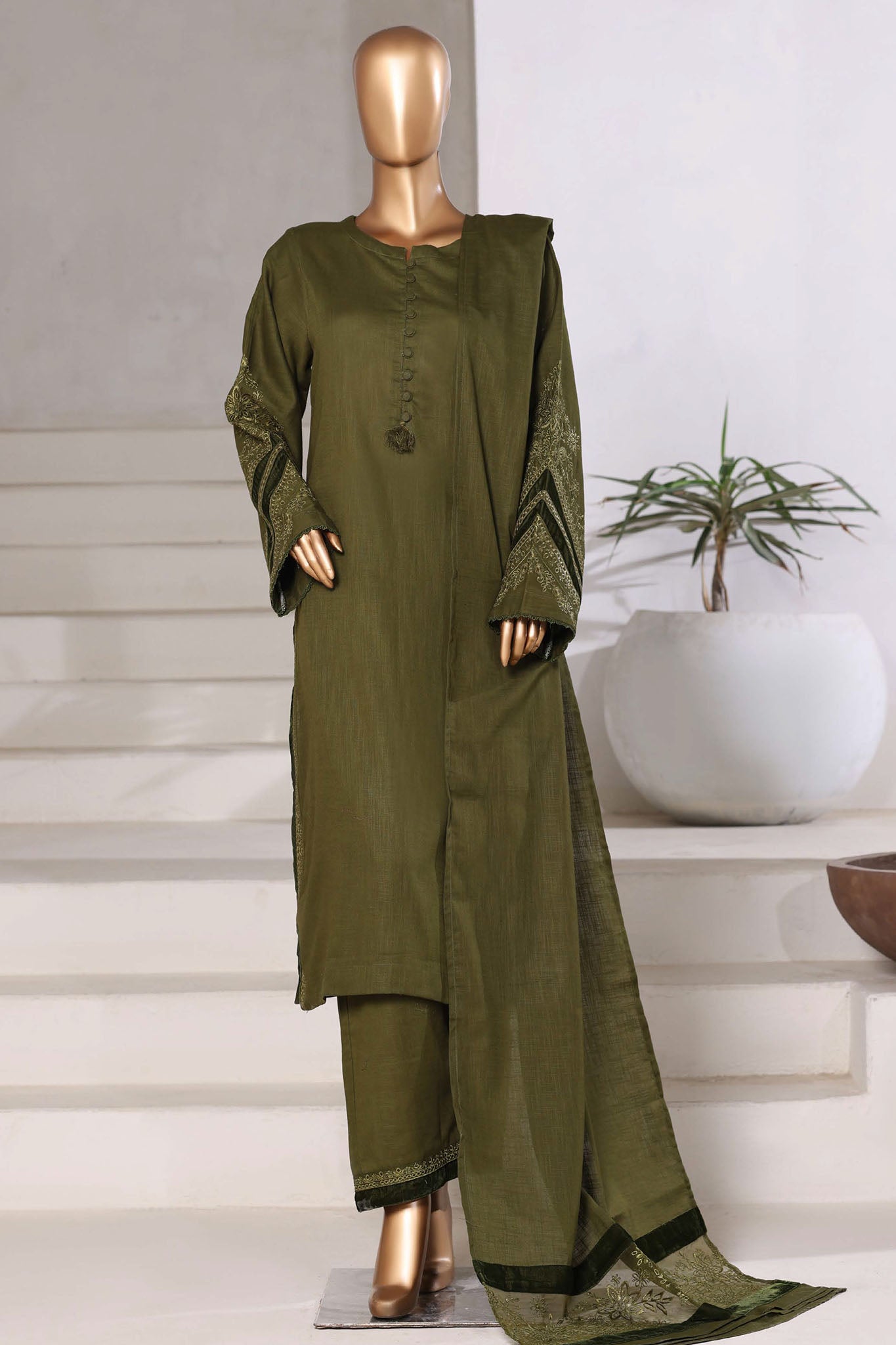 Sada Bahar Sitched 3 Piece Premium Cross Texture With Velvet Collection'2025-PWV-252-Mehndi