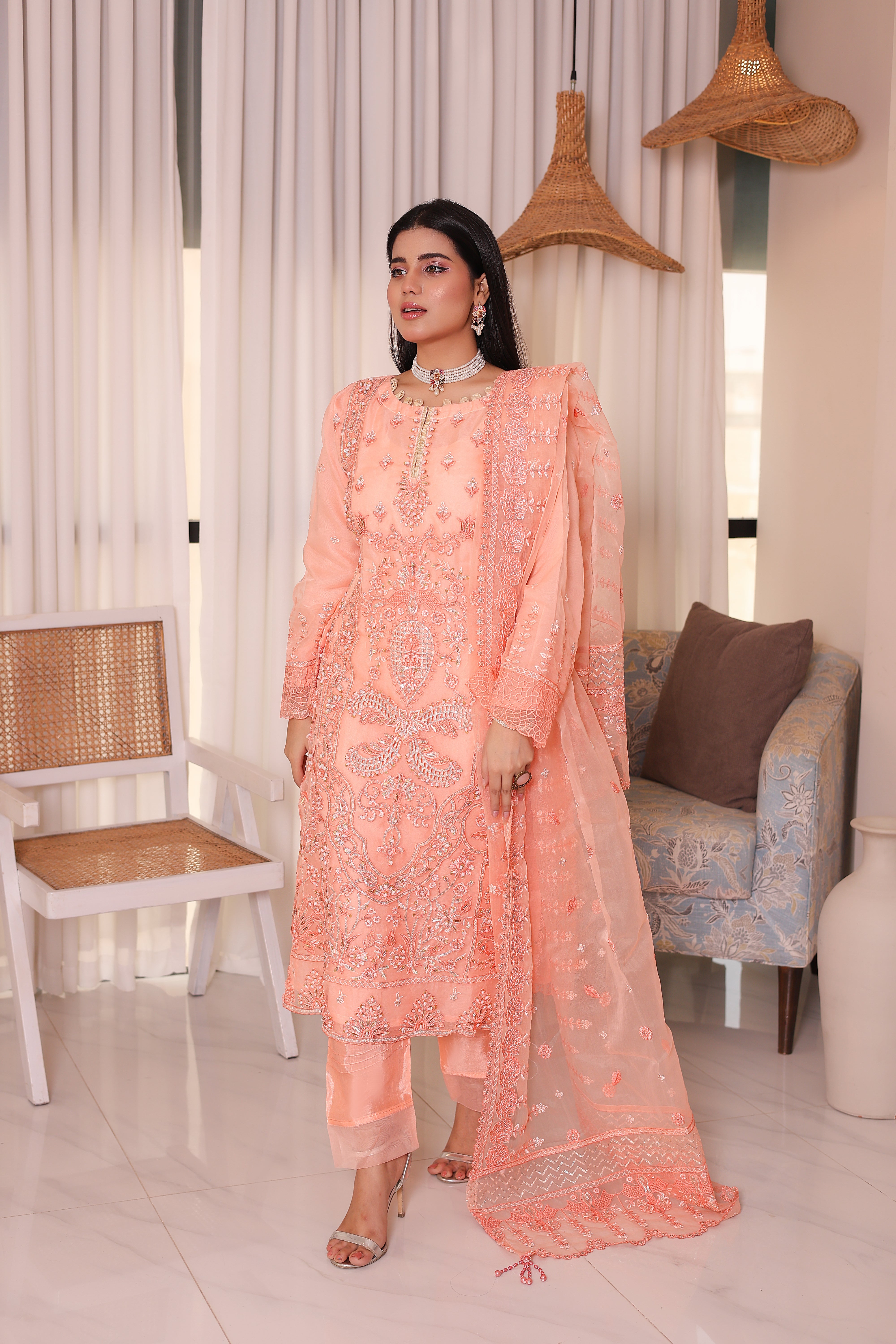 ð??? Heavy Embroidered & Embellished Stitched Organza Shirt â?? A luxurious statement piece featuring intricate embroidery and embellishments, exuding sophistication and charm.