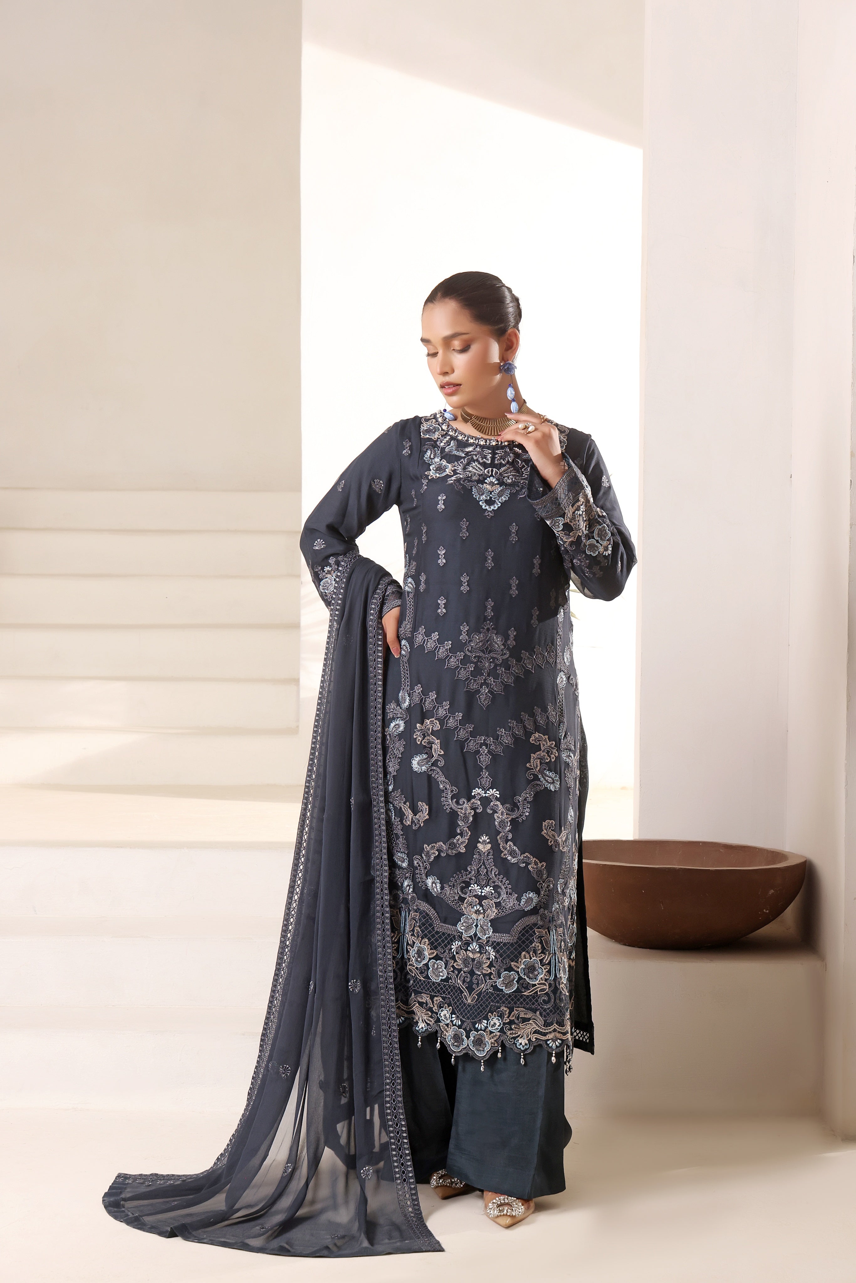 Samara By Dressline Semi Stitched 3 Piece Luxury Chiffon Formals Collection'2025-samara-semi-stitched-chiffon-DkGray
