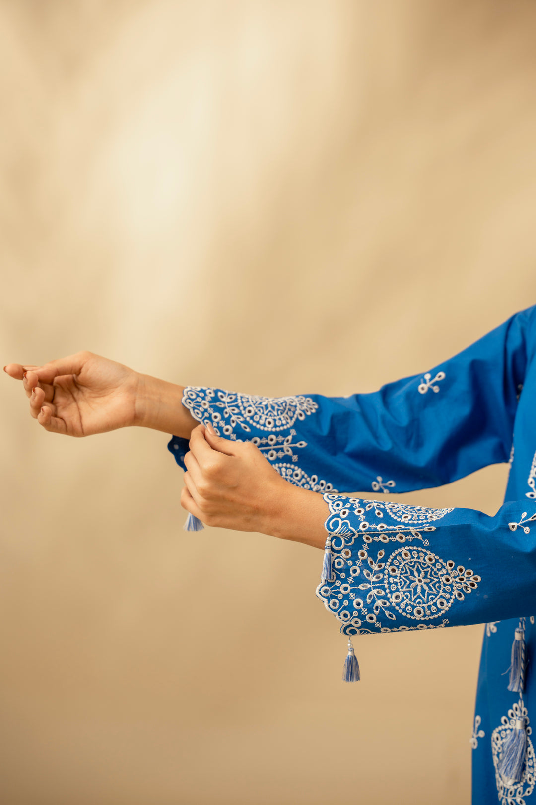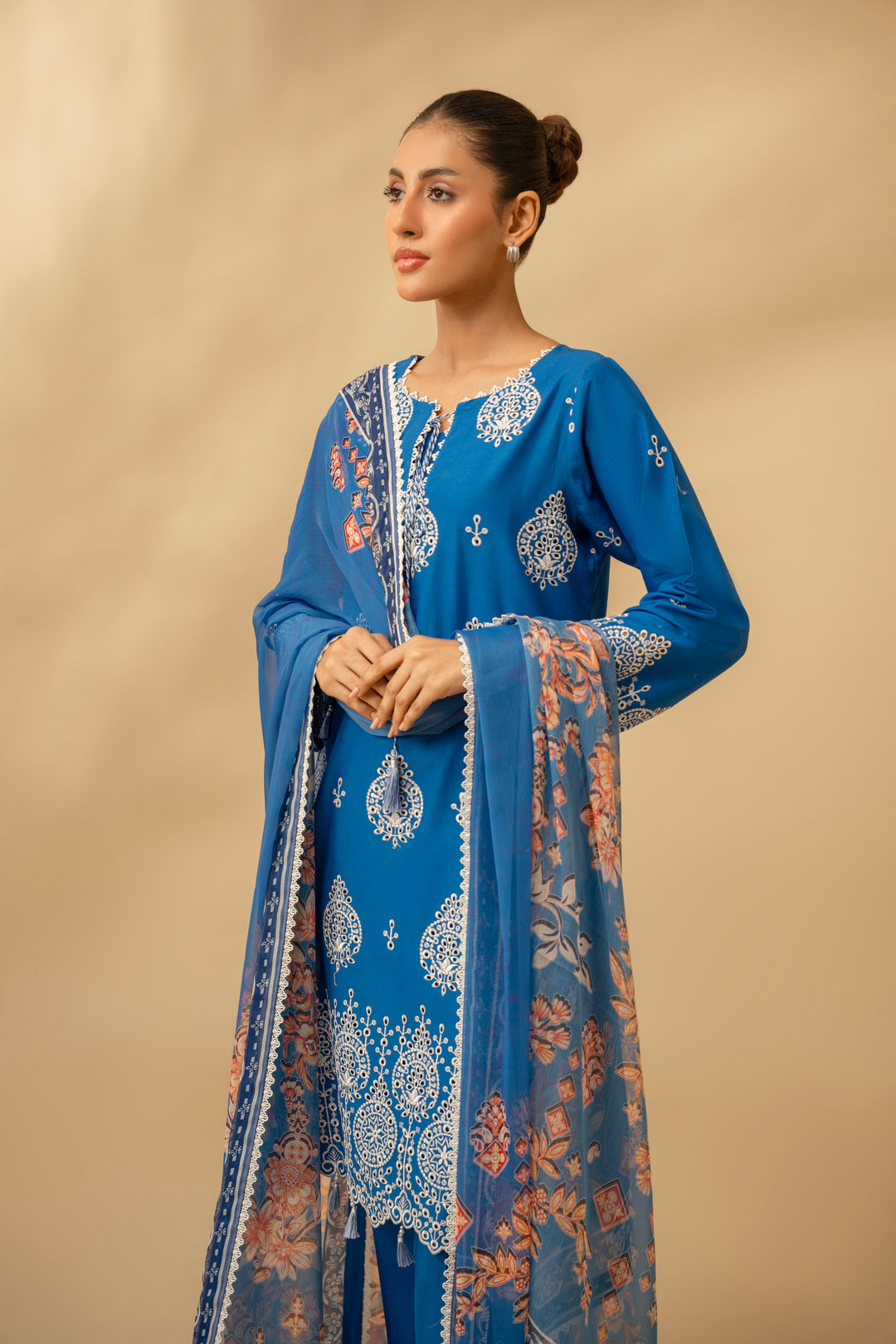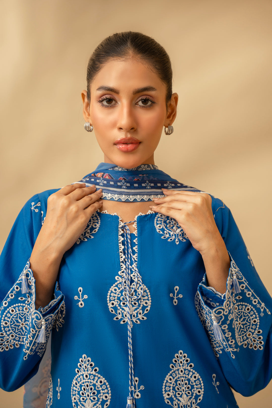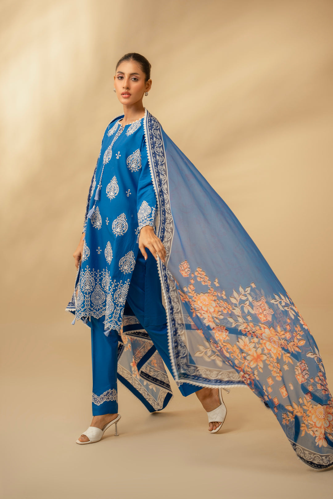 Elevate your summer wardrobe with the Sapphire Spark 3-piece Chikankari lawn suit. This elegant ensemble combines intricate chikankari embroidery with breathable lawn fabric, ensuring both comfort and style in warm weather. Perfect for daytime gatherings or casual outings, it offers a graceful silhouette and timeless appeal. Experience the blend of tradition and modern ease with Sapphire Spark.