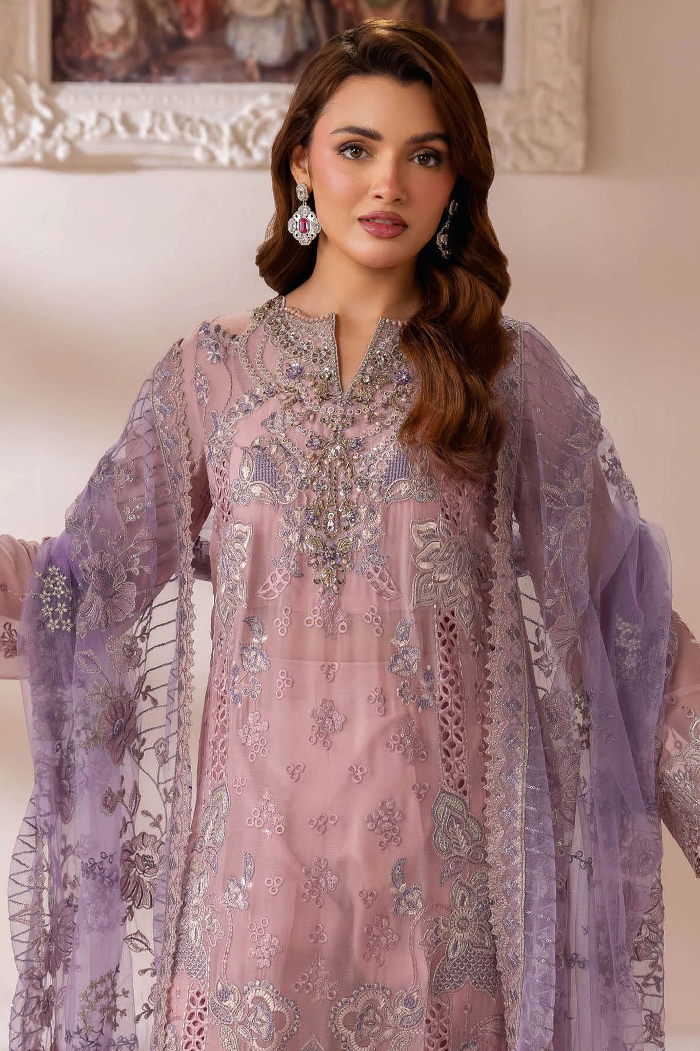 • Unstitched 3 Piece Bamber Chiffon with Handmade Galla Suit