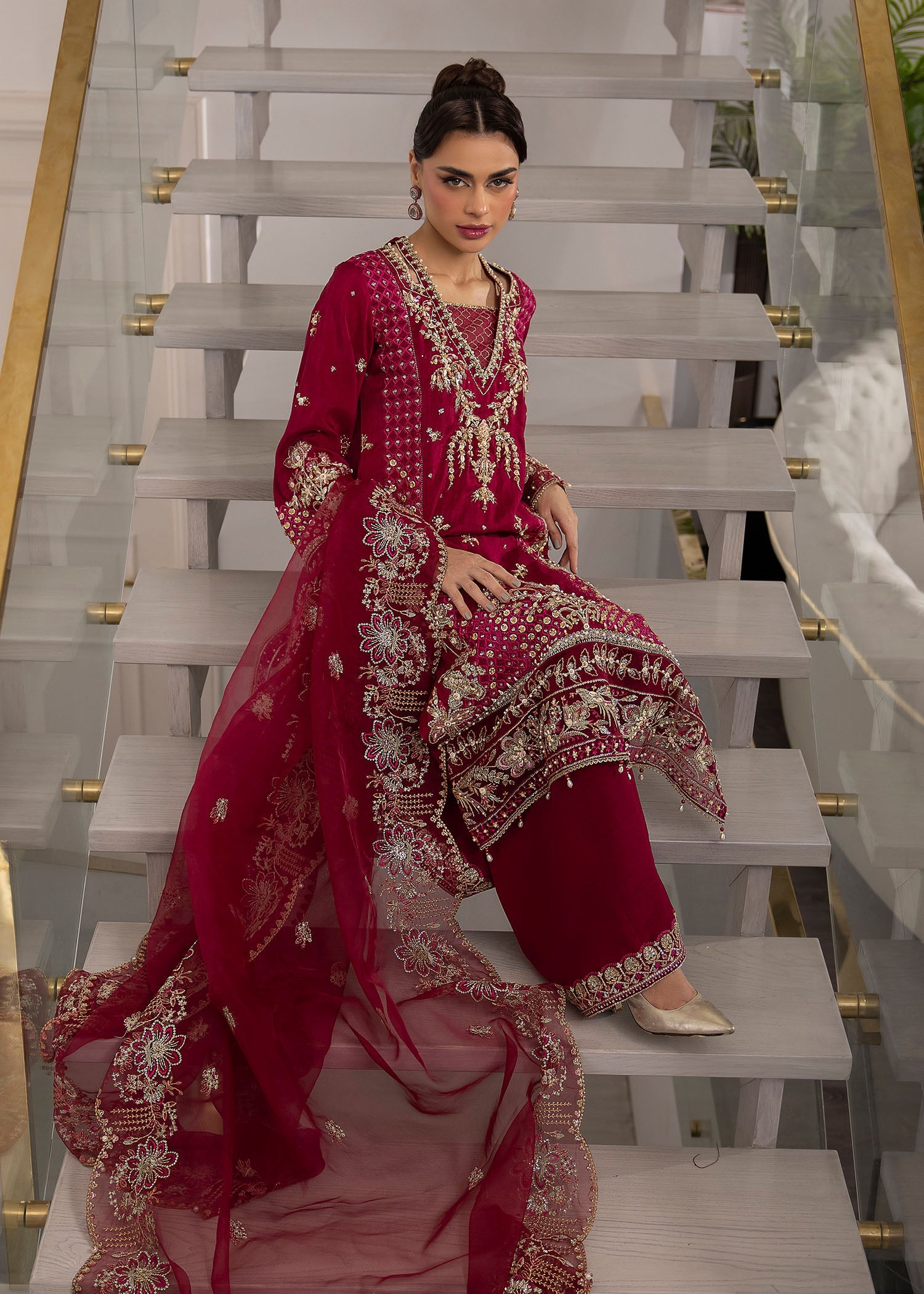 Bin Saeed Stitched 3 Piece Printed Khaddar Vol-03 Collection'2025-WK-2382-Maroon