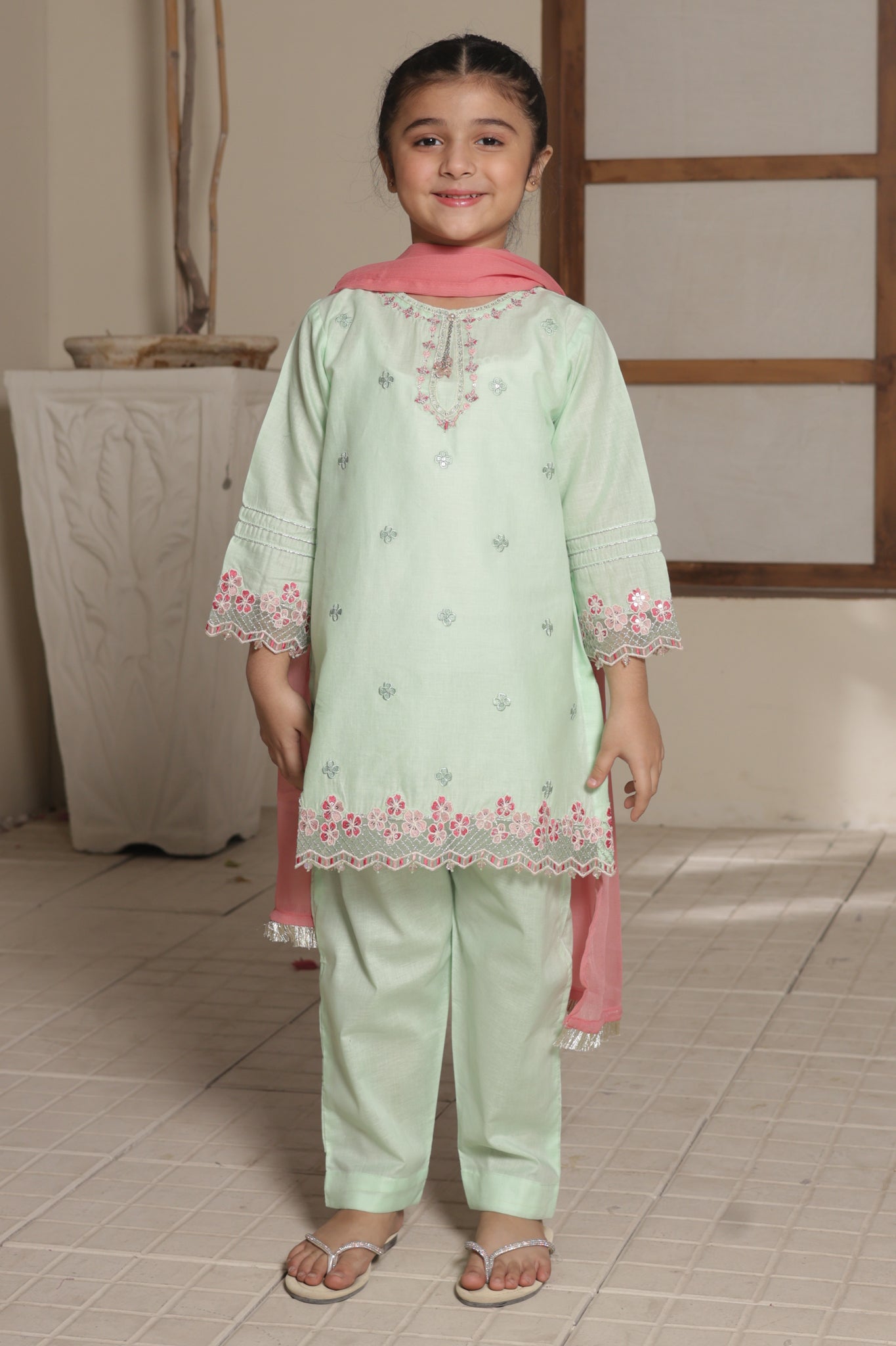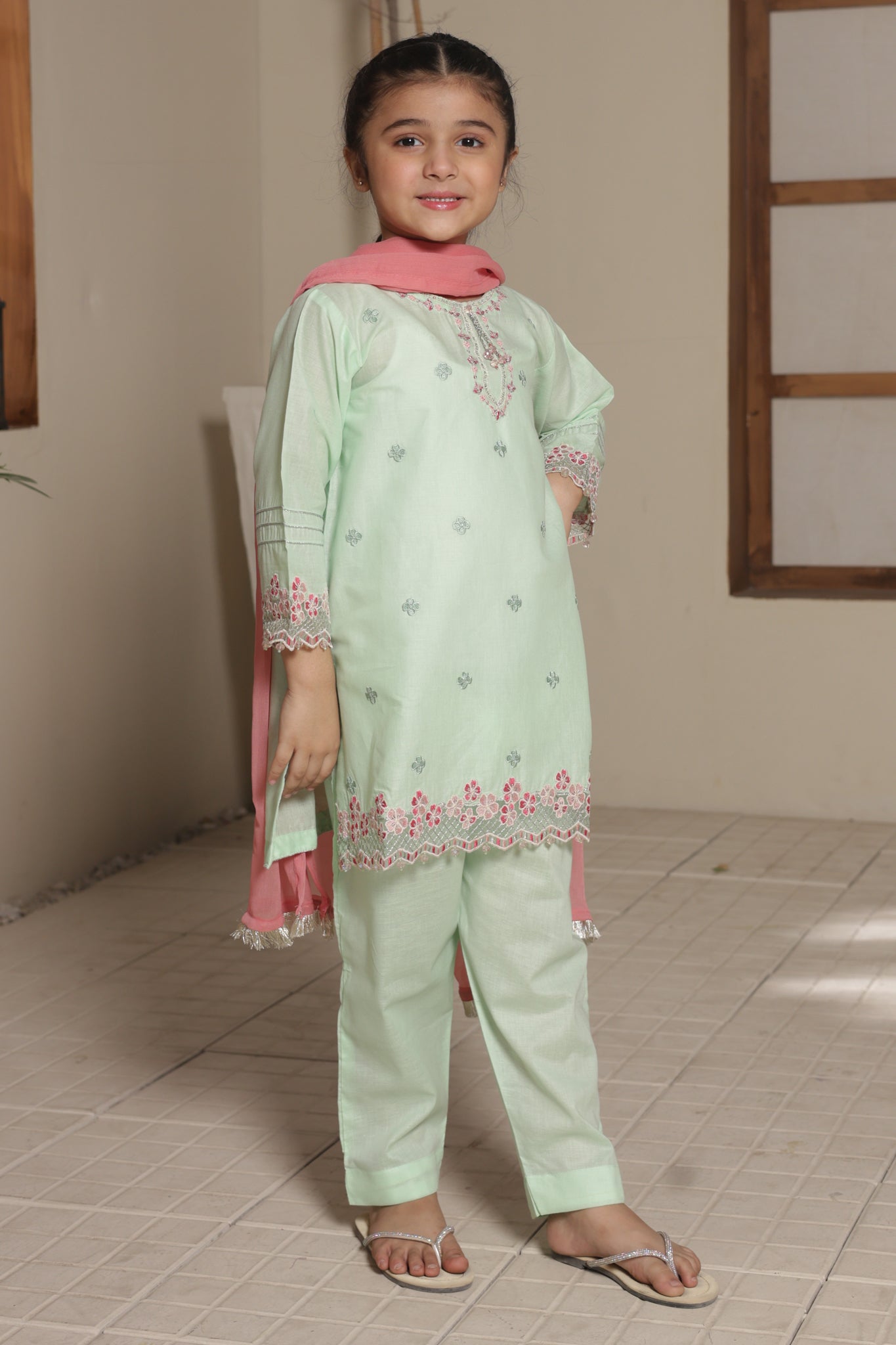 Nat Khat Guriya By Shanzey Stitched 3 Piece Cotton Suit-SHK-5608-Mint