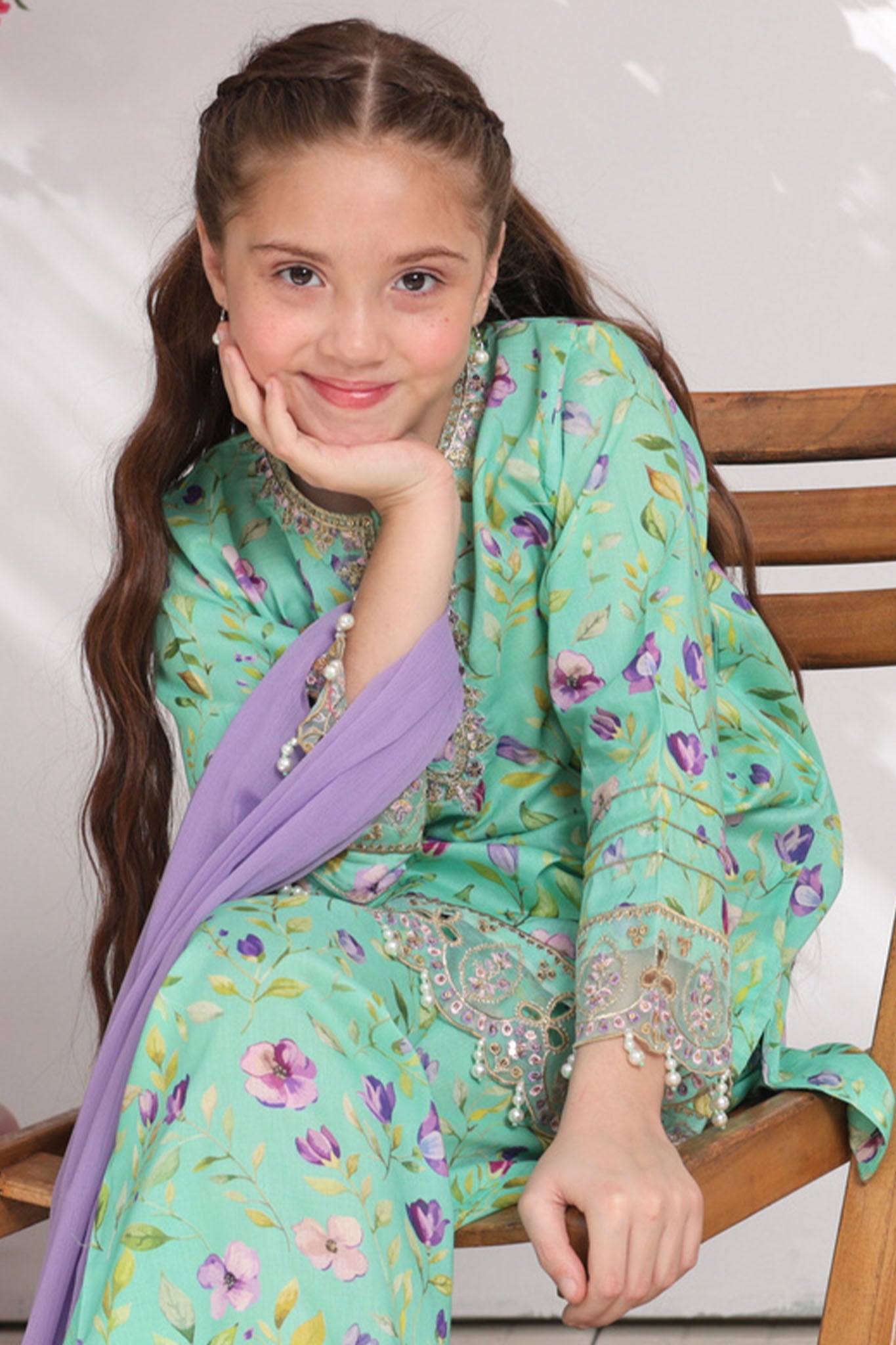 • Embroidered and embellished printed Lawn Co-ords with Chiffon Dupatta