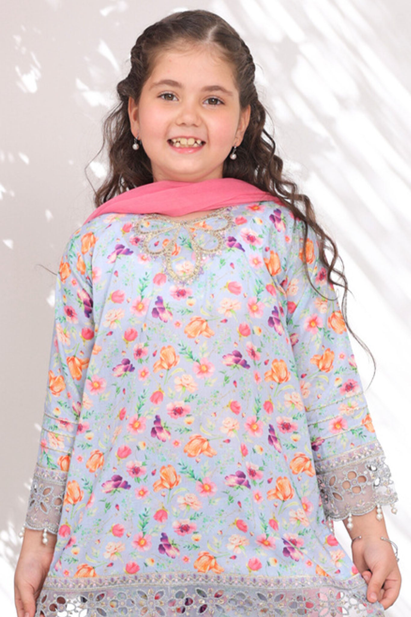 • Embroidered and embellished printed Lawn Co-ords with Chiffon Dupatta