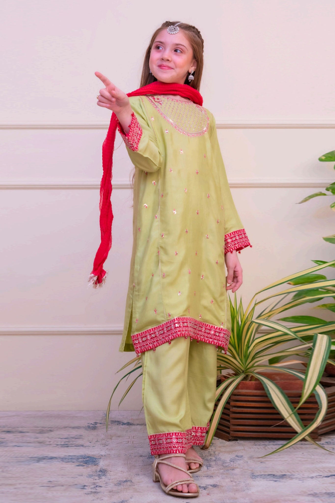 Shanzey Stitched 3 Piece Luxe Raw Silk Edit Formals Collection'2025-SHK-4803-Lime Green