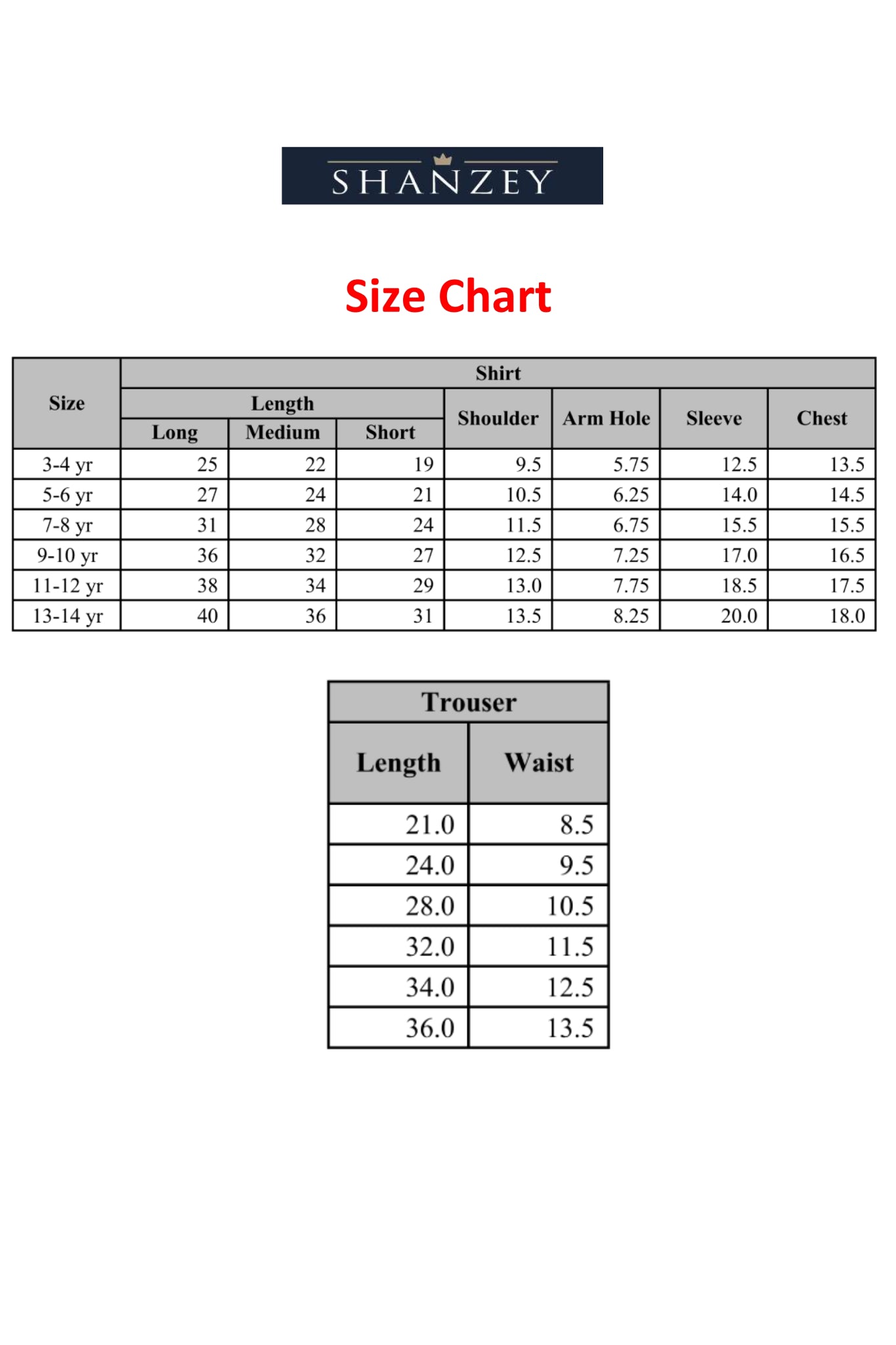Size chart