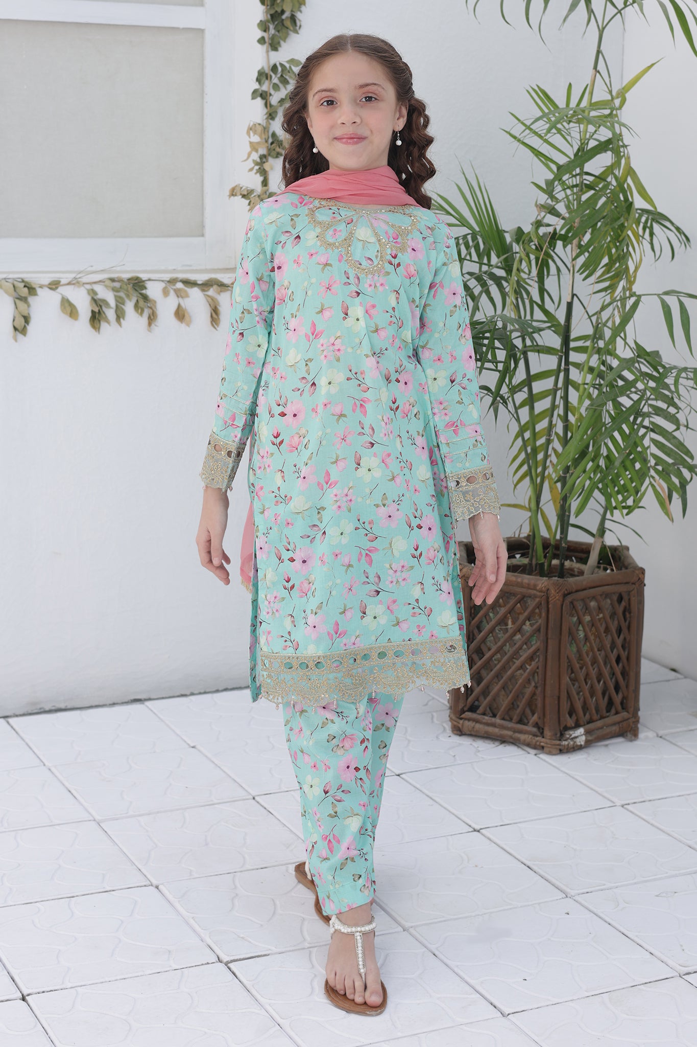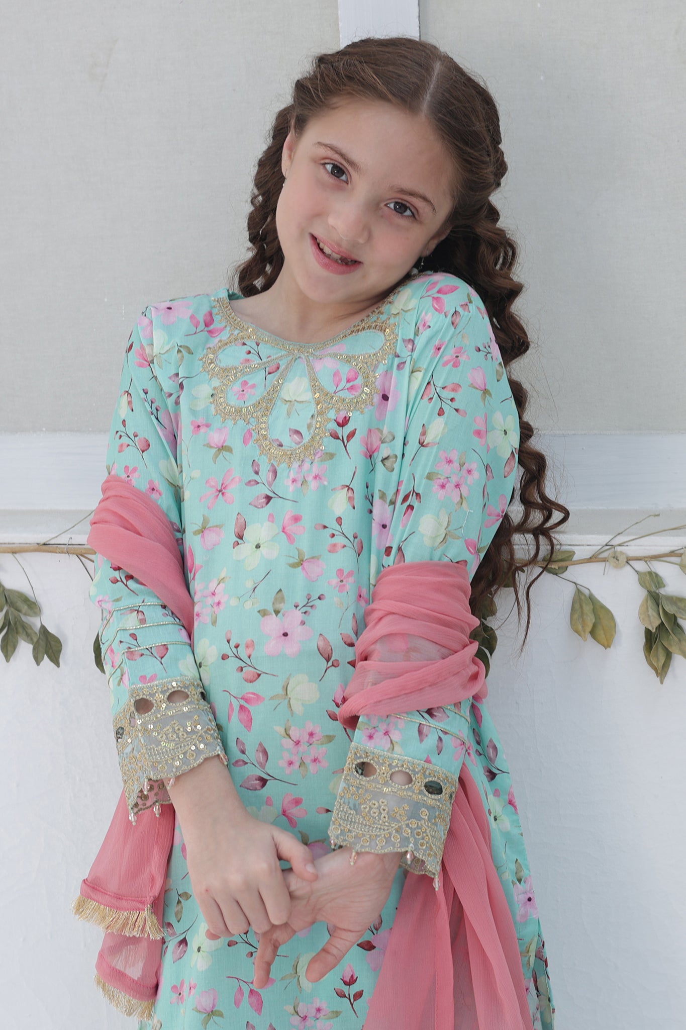 • Embroidered and embellished printed Lawn Co-ords with Chiffon Dupatta