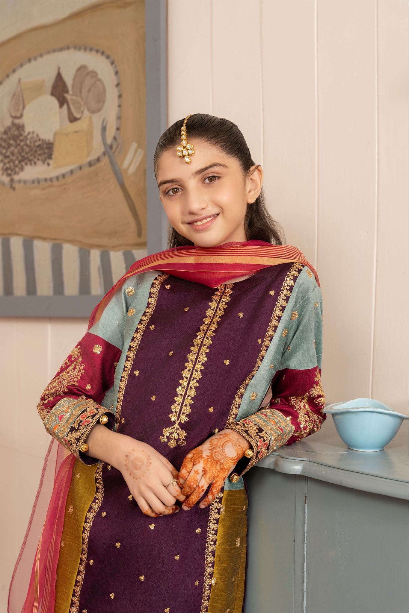 2 piece purple kurta set for girls - festive/party wear for summer/ Embroidered