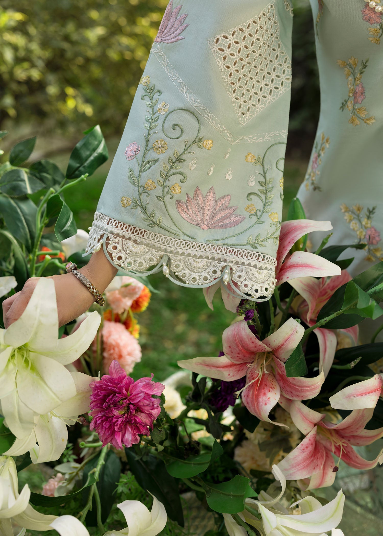 • Embroidered Front Hem Border with laser worked Printed Organza Insert (lawn)