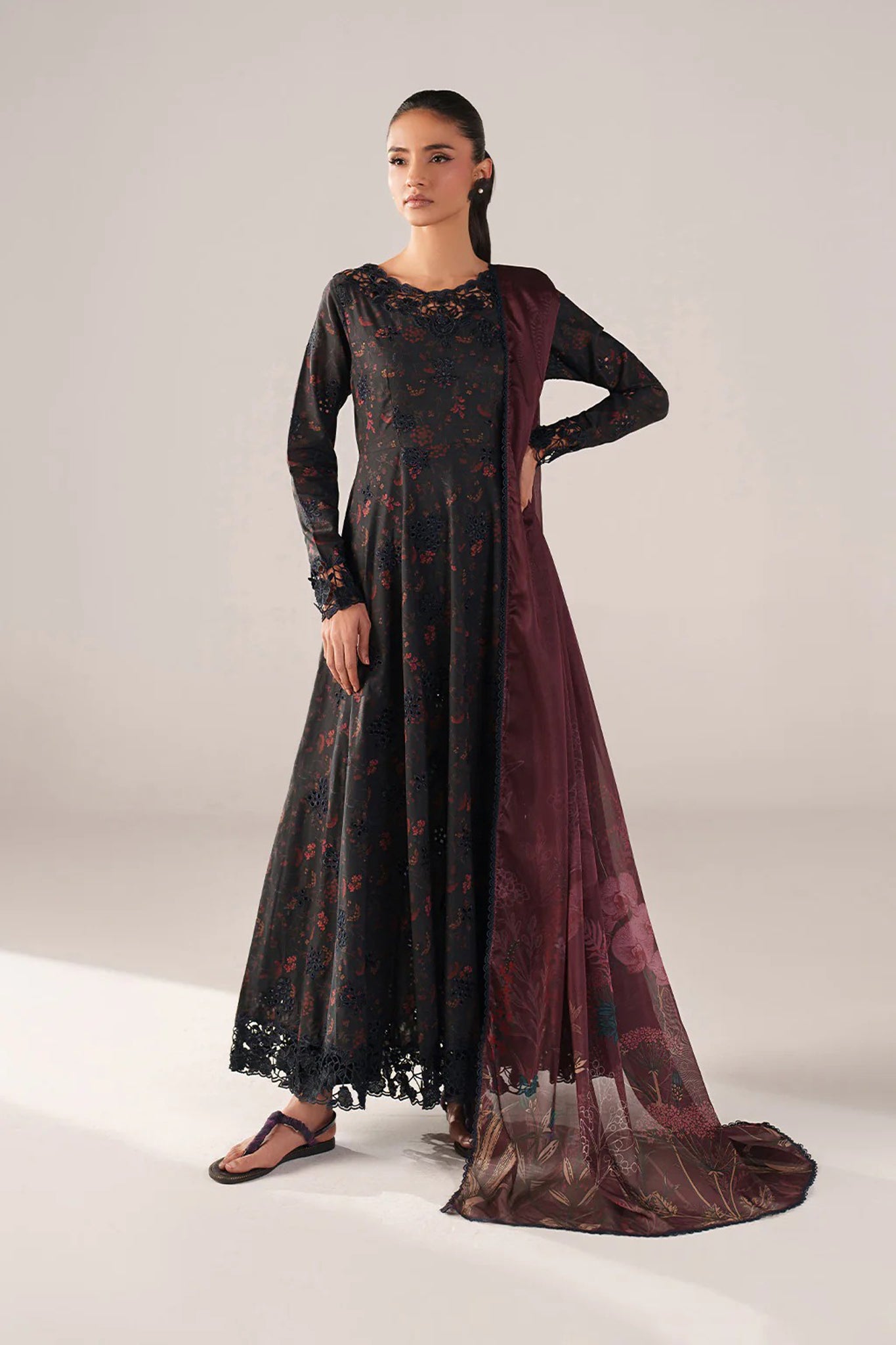 Frock Front, Back & Sleeves: Borer Embroidered Printed Lawn