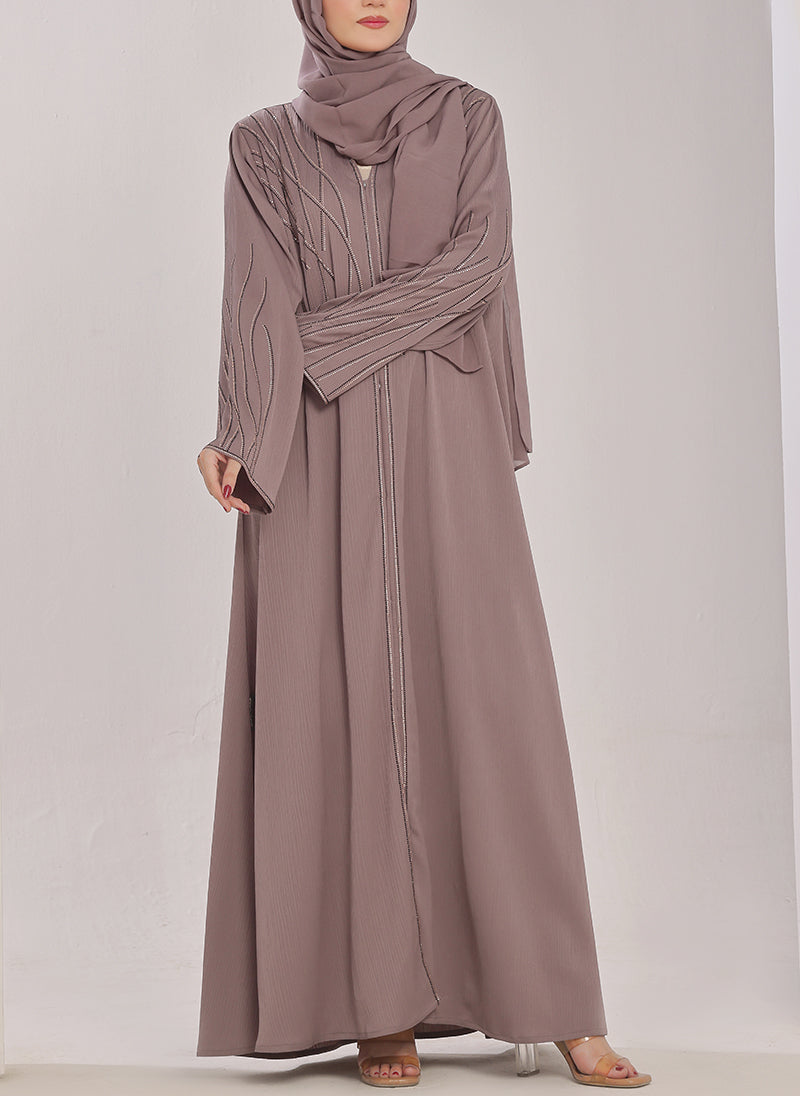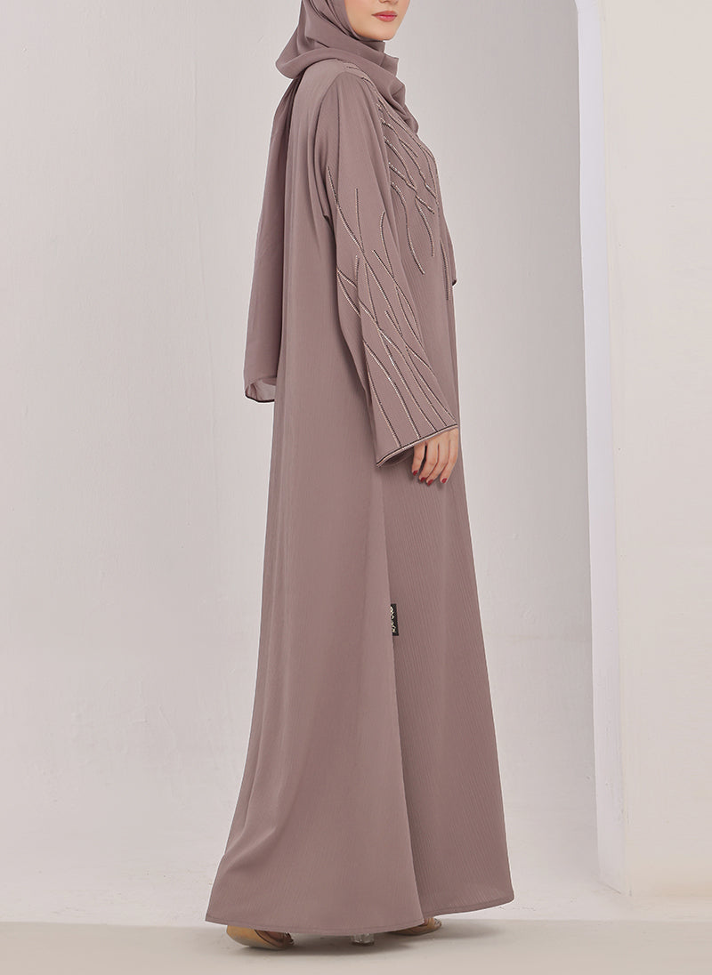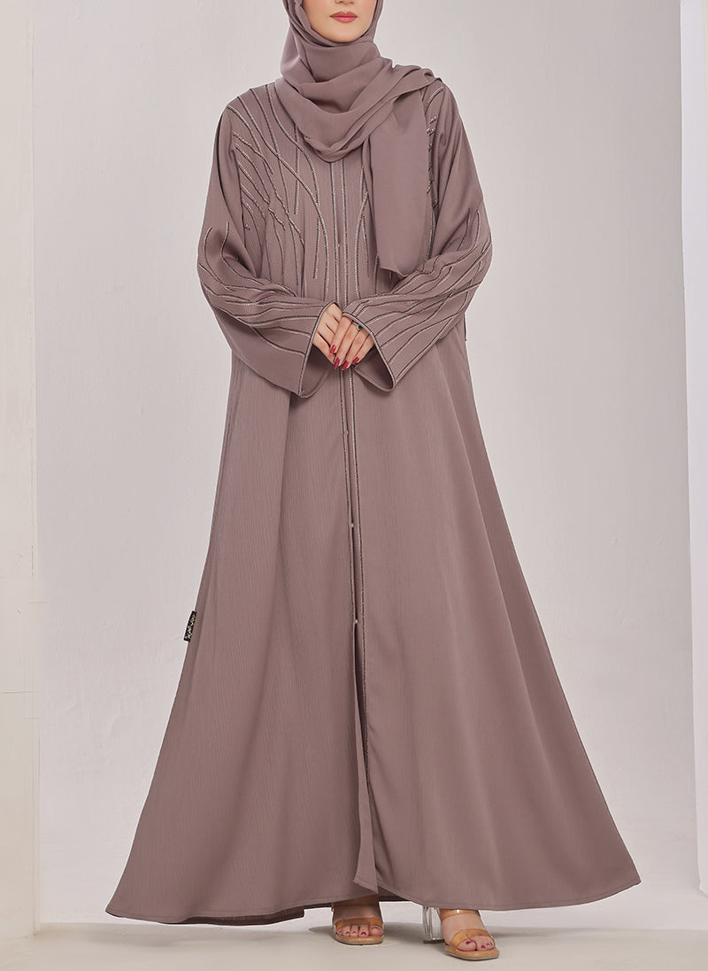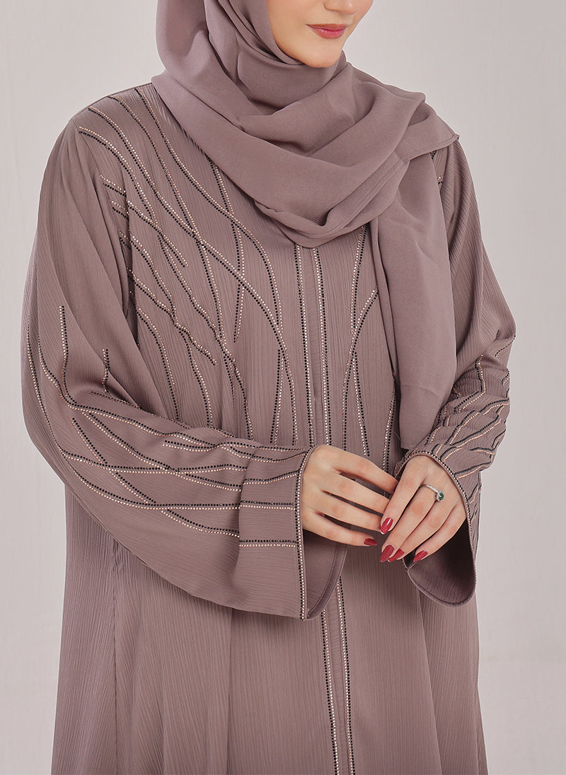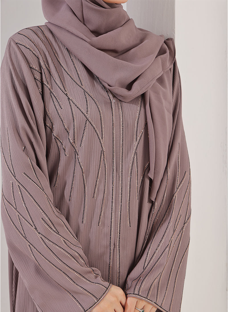 This Stone Work Zoom Light Lavender Abaya features elegant stone work that adds a touch of sophistication to your attire. The light lavender color is perfect for any occasion, and the zoom cut gives it a modern and flattering silhouette. Elevate your style with this stunning abaya.