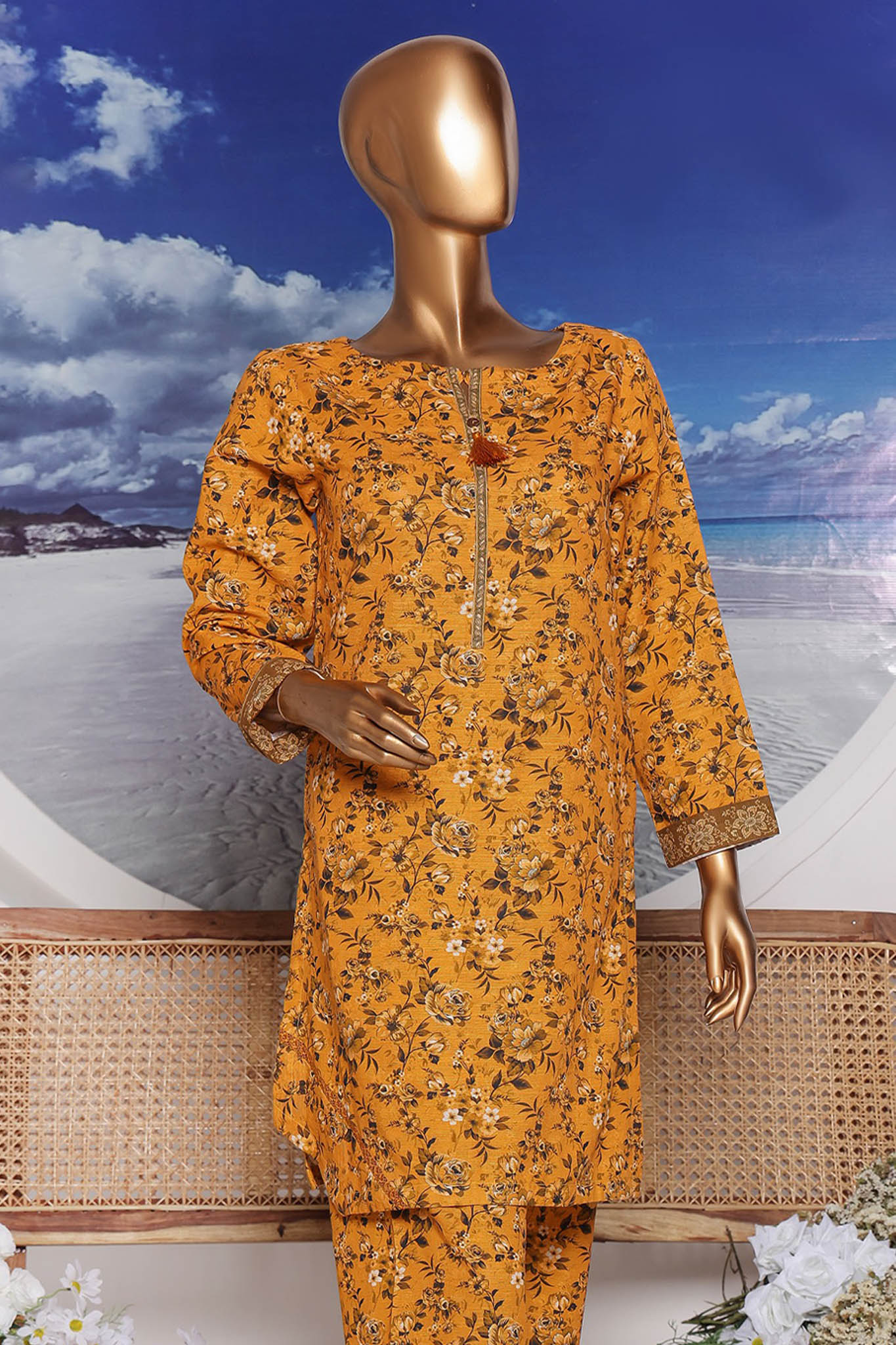 Sumi Stitched Co Ords Printed Khaddar Collection'2025-KC-01-Mustard