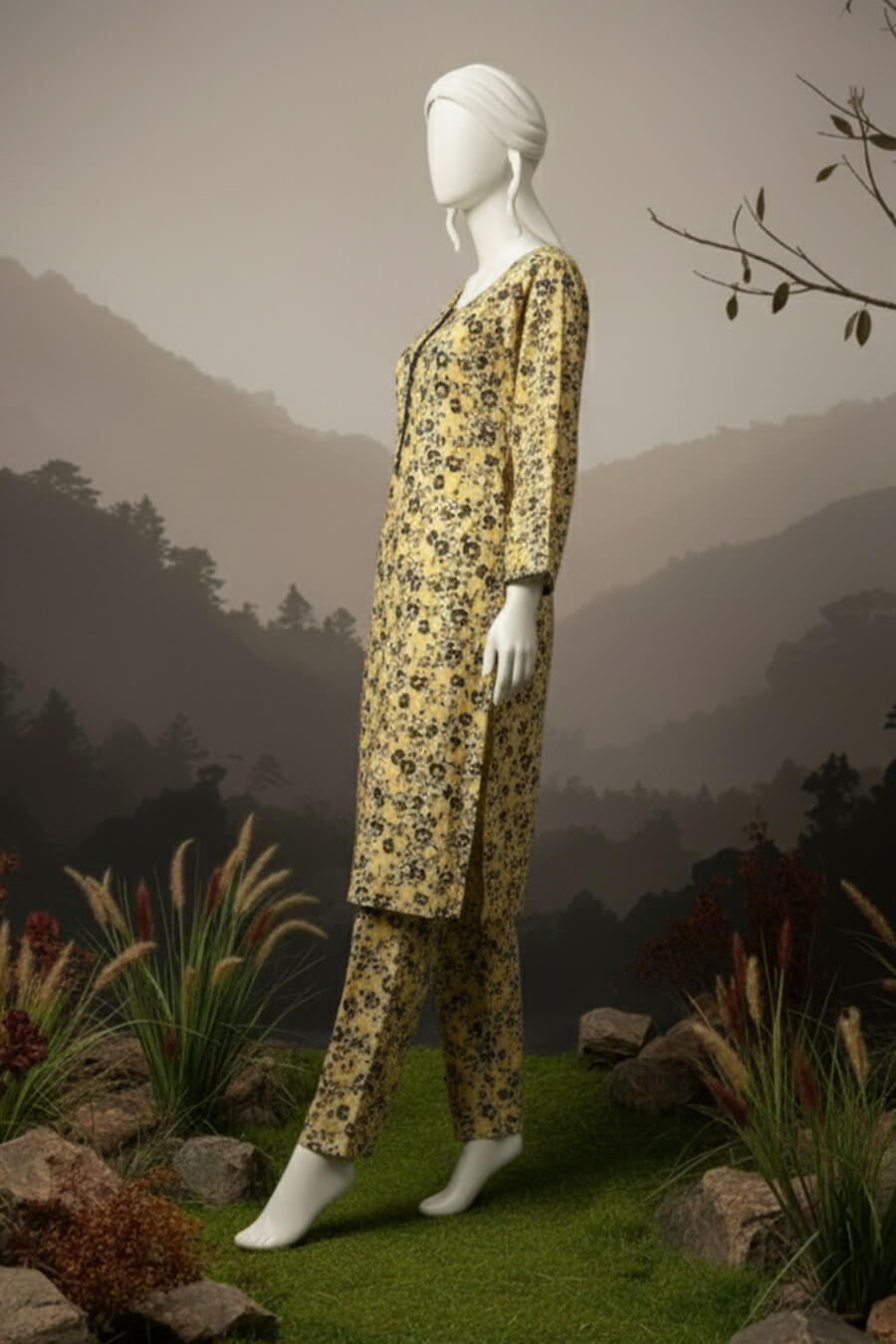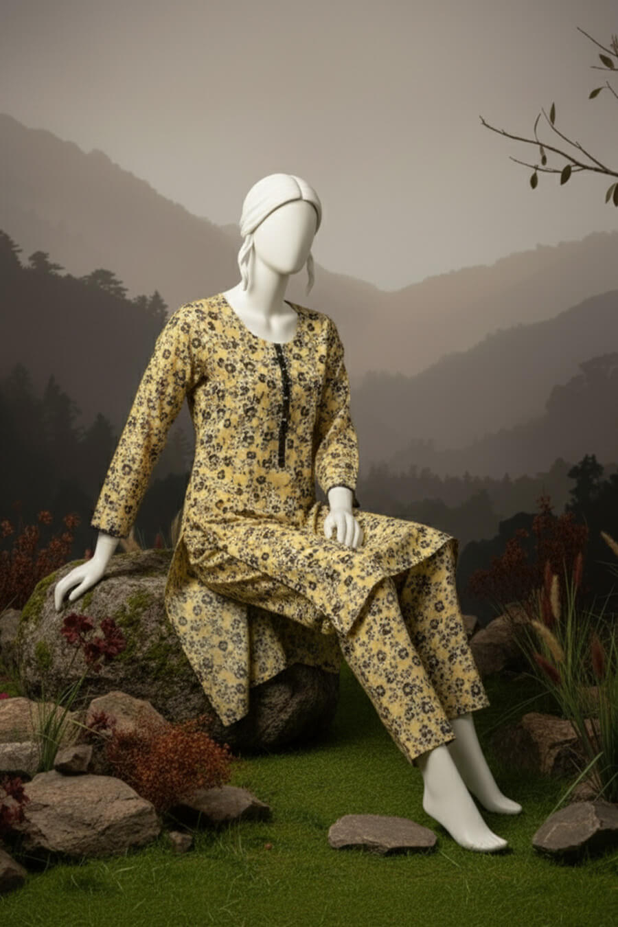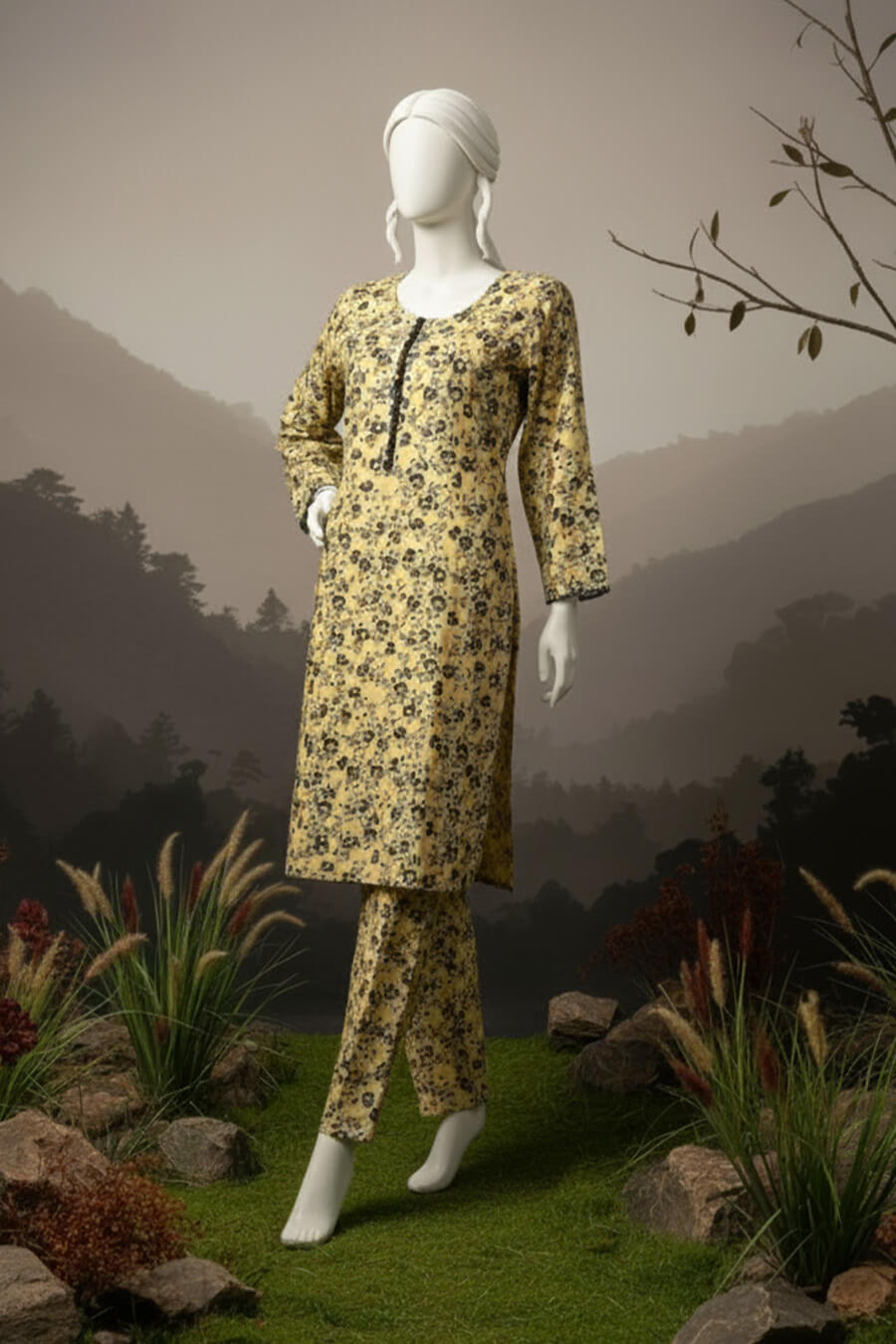 Printed Stitched 2-Piece Allover Design on Premium Bana Dora Lawn / Slub Lining Doriya Lawn
