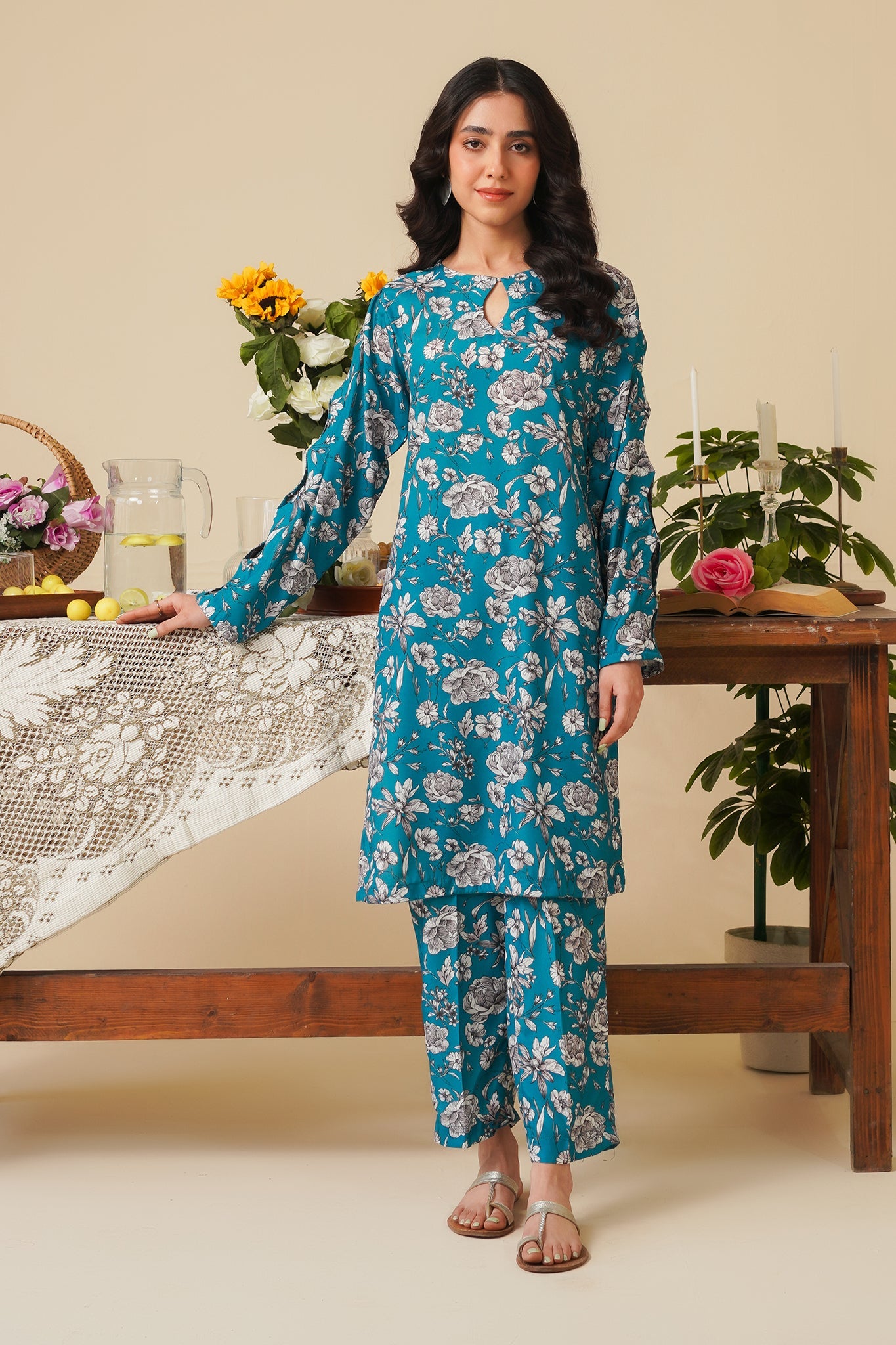 Sada Bahar Stitched 3 Piece Printed Shimmered Cambric Collection'2025-SC-303-BLUE