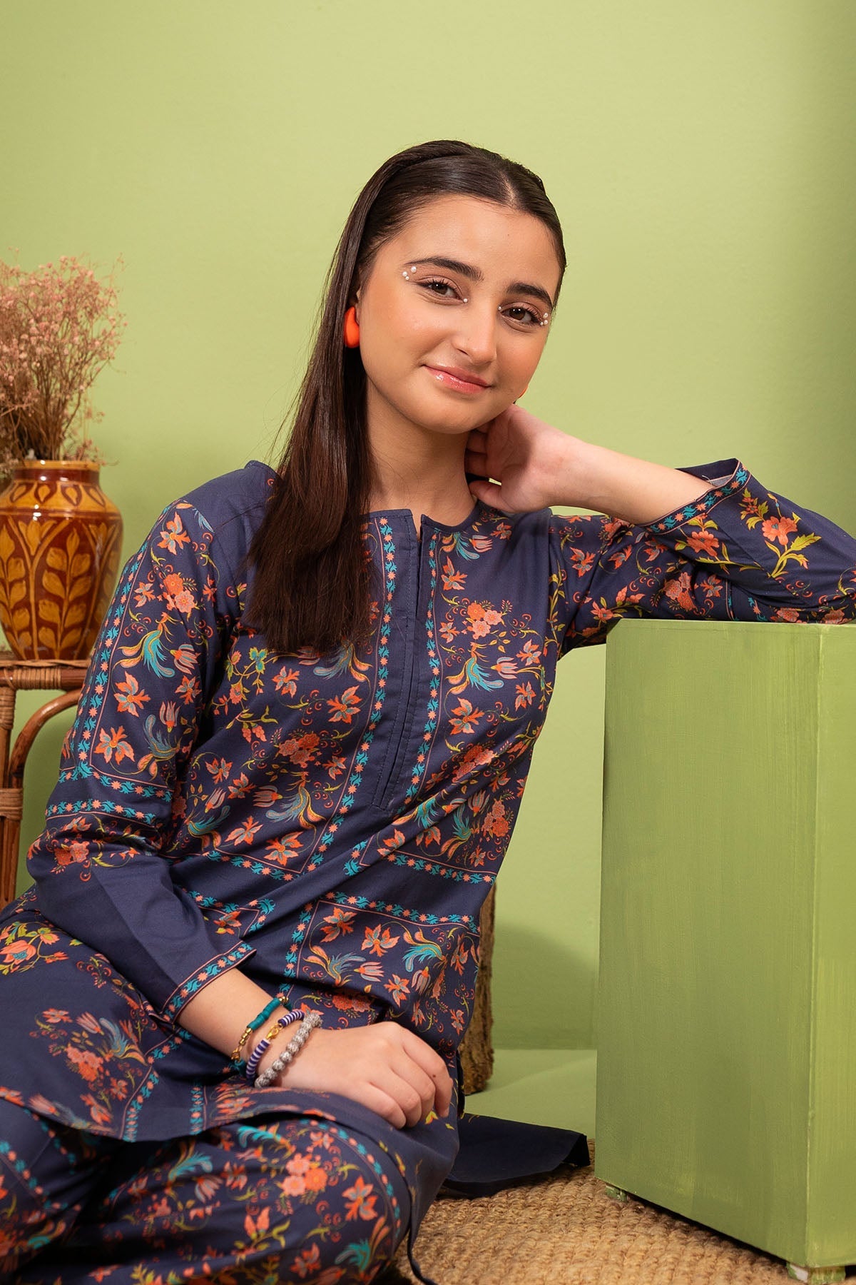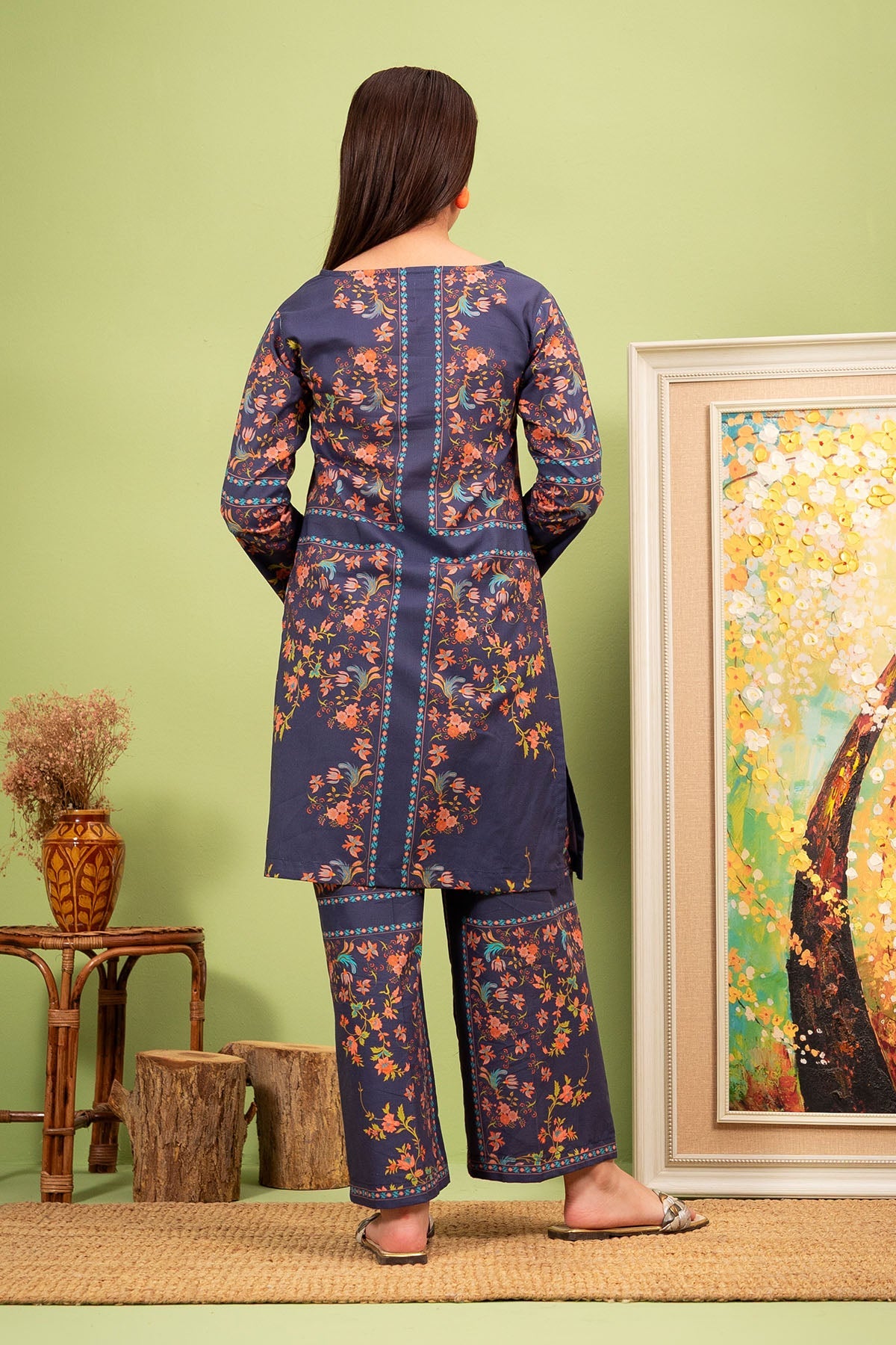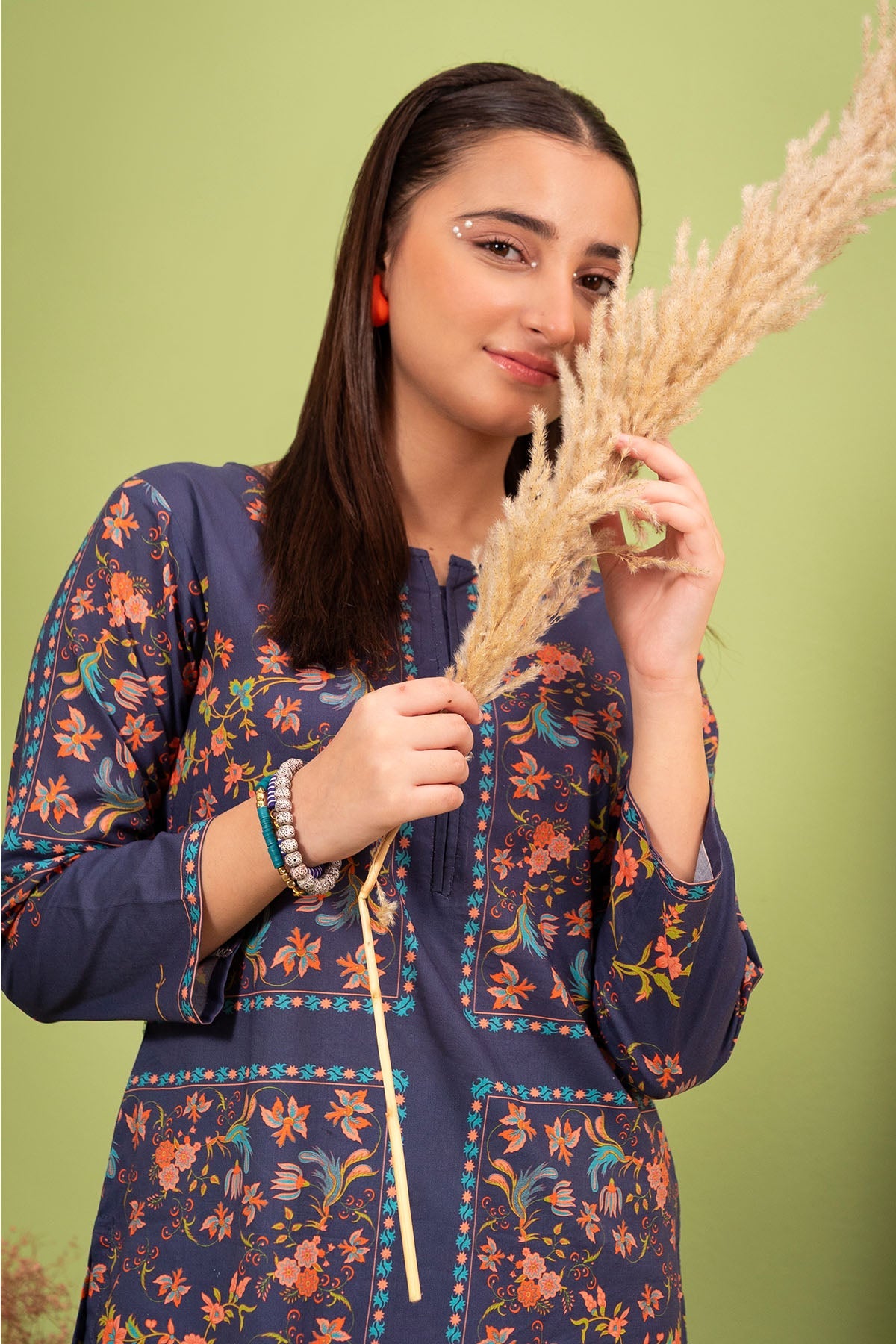 Bottom: Navy Blue Digital Printed Lawn Trouser
