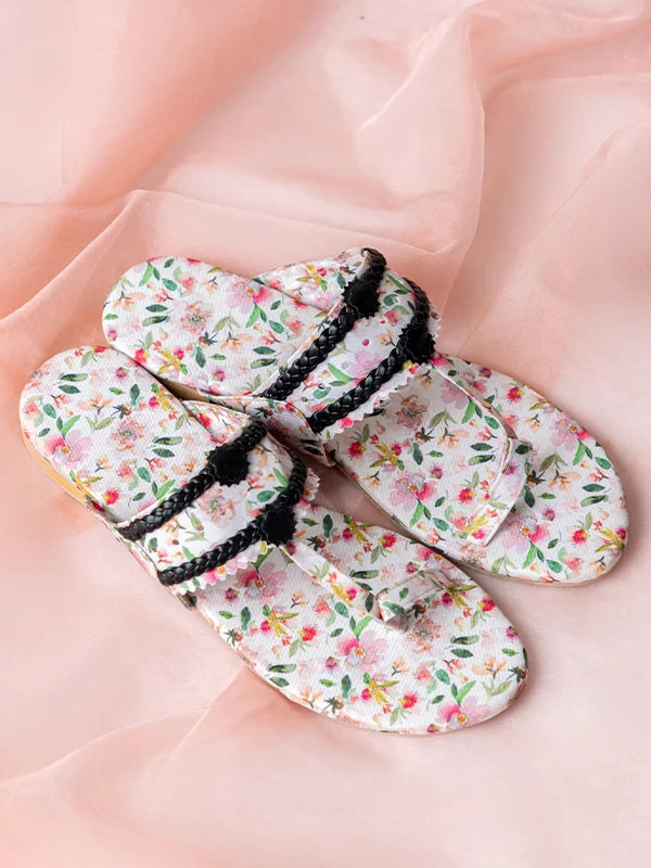 Romantic pink floral base highlighted with black braided straps. A bold contrast for floral lovers.