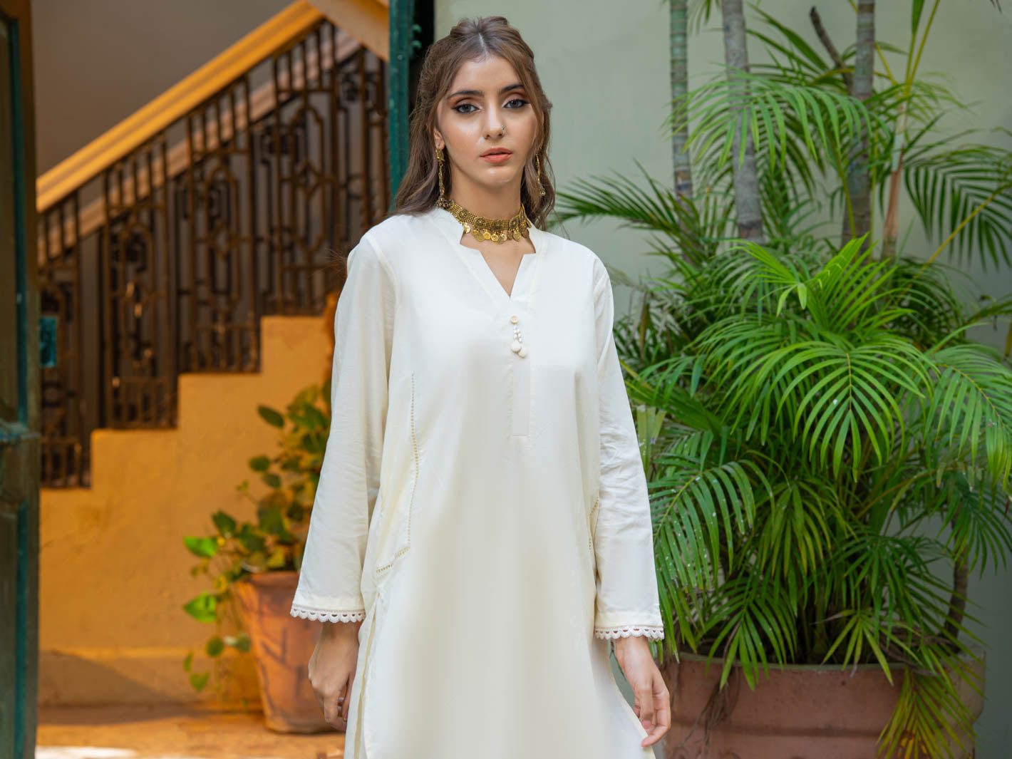 A Very Beautiful off white 2 Piece Set Includes Shirt & Trouser.