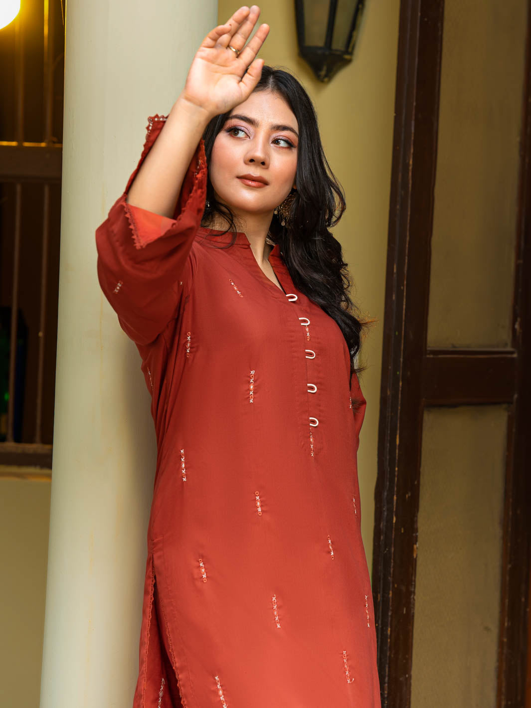 A Very Beautiful Rust 2 Piece Set Includes Shirt & Trouser.