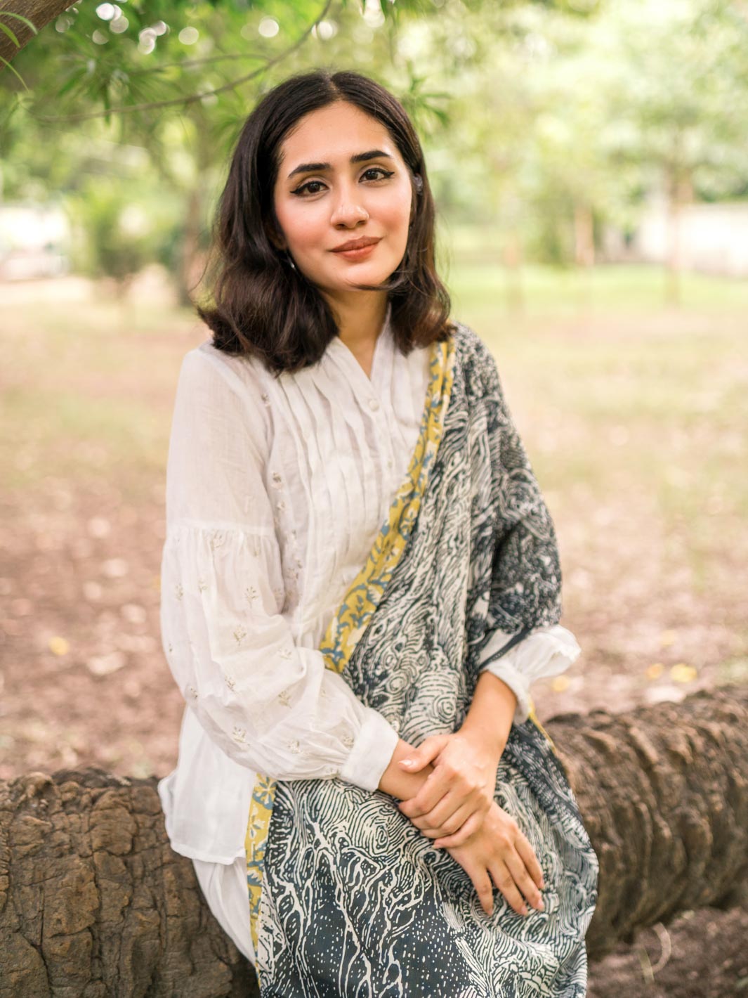 Double the design, double the depth—where every fold reveals a new verse.Printed on both sides,because beauty deserves more than one view.Calligraphy and print in conversation—woven on whisper-soft silk.Every side speaks—let your stole tell both tales.Reversible elegance in crinkle silk—crafted for those who carry layered stories.