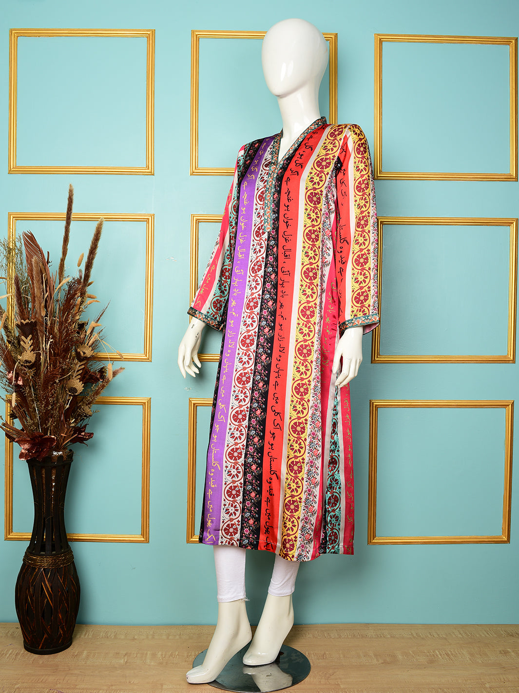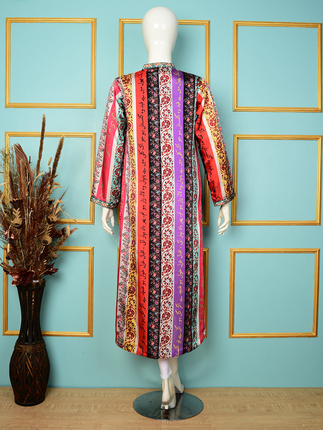 Long Silk Shirt with delicate detailing with calligraphy and printed  perfect for layering over Eastern wear. Crafted from premium Raw Silk, this long shirt adds a flowy flair to your summer wardrobe. A timeless layering piece  breathable, graceful, and always in style. From casual lunches to festive evenings, our Raw Silk Shirt is your perfect companion. Elegant drape, soft texture  meet your new go-to shirt.