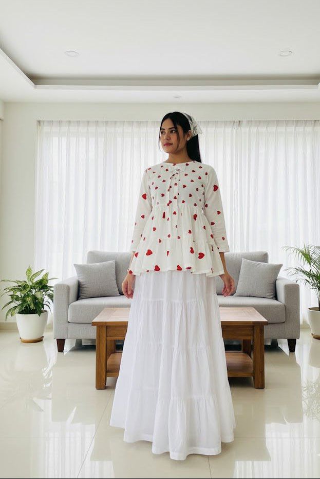 Elevate your everyday style with this white cotton maxi skirt, crafted from soft and breathable cotton for all-day comfort.
