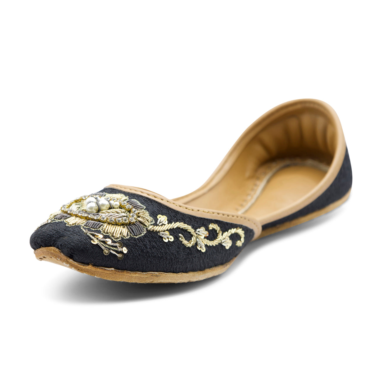 A bold black jutti, handcrafted for effortless charm, merging heritage with modern style.