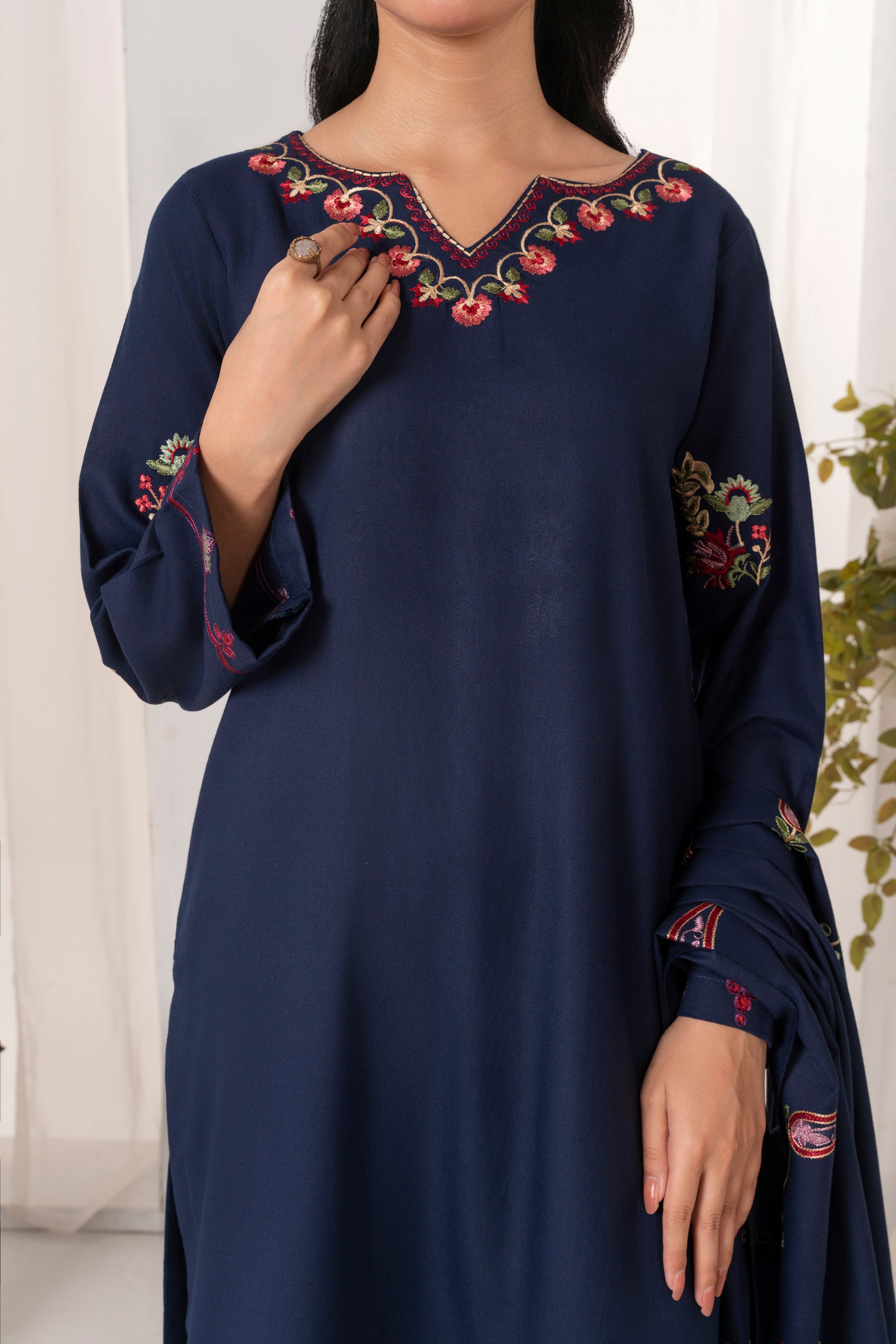 Experience an exquisitely (Unstitched) Embroidered Dhanak shawl with Embroidered Dhanak suit for a new go this winter season.